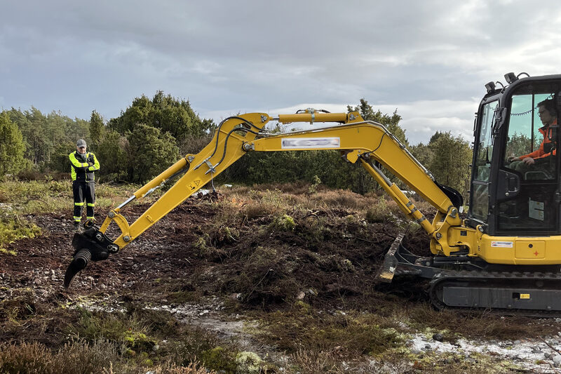 Bagger auf Kettenlaufwerk in den Feuersteinfeldern auf der DBU-Naturerbefläche Prora