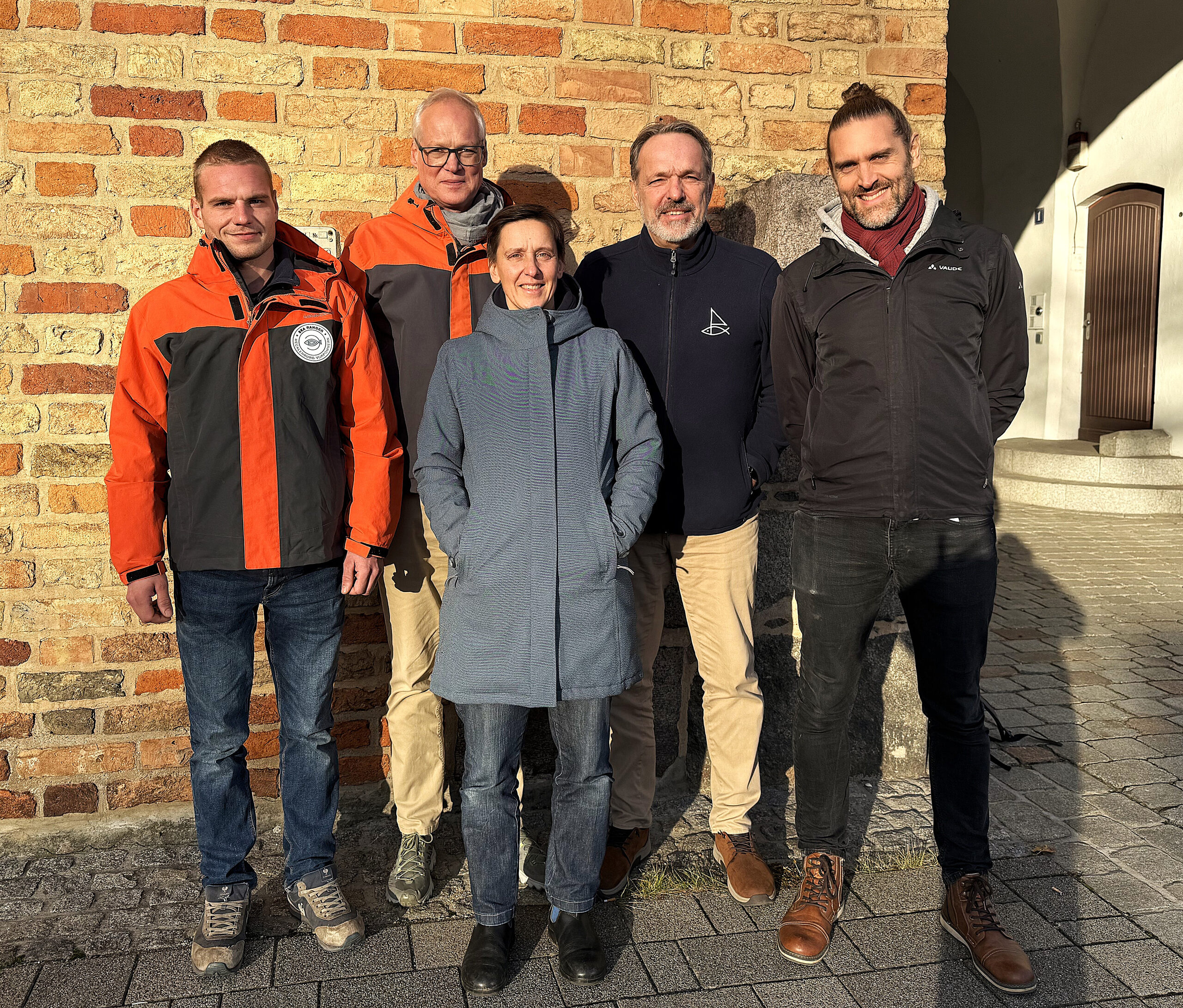 Die Menschen hinter dem DBU-Förderprojekt „Baltic Sea Ranger“ (von links): Gustav Martitz, Martin Schlockwerder und Oliver Greve (alle vom Verein Sea Ranger) sowie Kathleen Schwerdtner Máñez und Thomas Winter (rechts) von der Stiftung „Baltic Sea Conservation Foundation, BaltCF. Zur Pressemitteilung „Baltic Sea Ranger“ (Januar 2026)