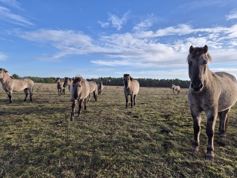 Eine Herde Konik-Pferde auf der DBU-Naturerbefläche Wesendorf