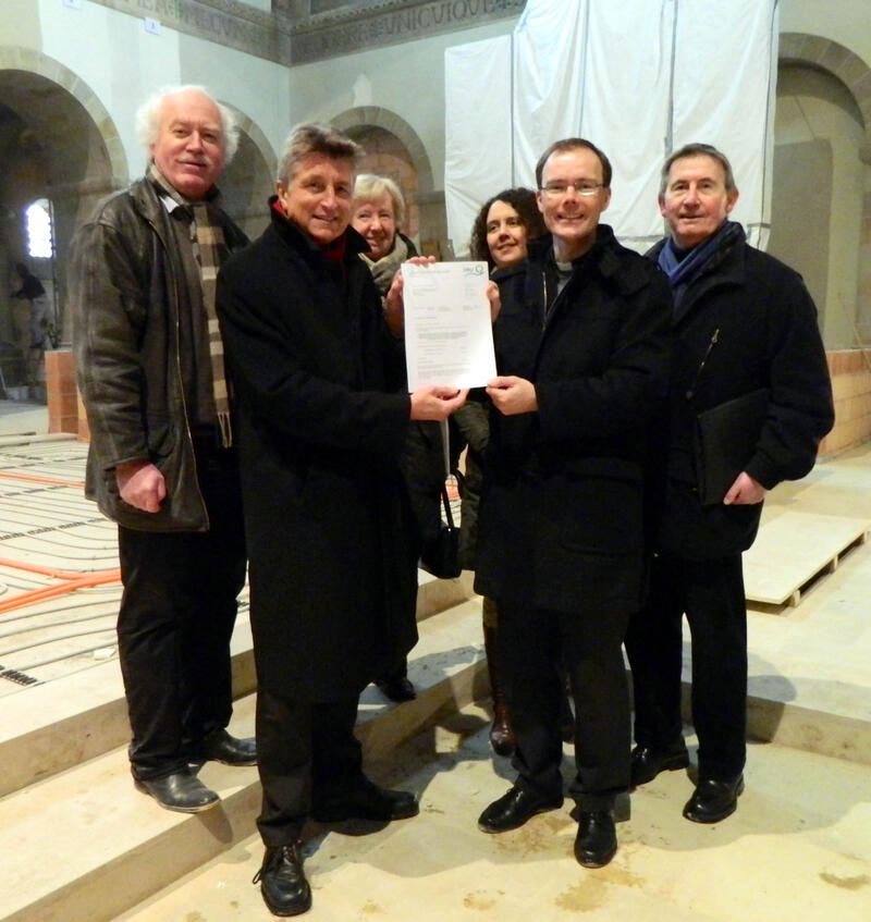 Osnabrück. „Die Malereien an den Wänden und Decken der Katholischen Pfarrkirche St. Joseph in Osnabrück sind in den letzten Jahrzehnten durch Autoabgase und Schadstoffe nahegelegener Industriebetriebe stark beschädigt worden. Diesen Verfallsprozess wollen wir stoppen.“ - Mit diesen Worten übergab heute Dr.-Ing. E. h. Fritz Brickwedde, Generalsekretär der Deutsche Bundesstiftung Umwelt (DBU), Pfarrer Hermann Hülsmann das Bewilligungsschreiben über 124.000 Euro in der Kirche St. Joseph. Im Zuge des geplanten Umbaus des Kirchenraums fördert die DBU das Erstellen und Erproben eines Konzepts zum dauerhaften Erhalt der Decken- und Wandmalerei. Insgesamt strebe die Kirche eine nachhaltige, ökologisch und ökonomisch wirksame Energieversorgung und -bereitstellung an, sagte Hülsmann. So soll beispielsweise die Energie einer benachbarten geothermischen Heizung die Kirche in Zukunft zum Teil mitversorgen.