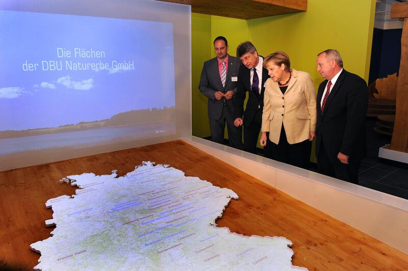 Merkel betonte, dass für dieses Projekt Menschen vor Ort arbeiteten, die auch mit der Liegenschaft, mit der Region bestens vertraut seien. Die DBU sei zum Glück nicht nur bereit, sondern auch in der Lage, verantwortungsvoll mit einem solchen Projekt umzugehen. Wichtig sei es, Verständnis bei den Menschen für Fauna und Flora zu wecken. Mit dem barrierefrei gebauten, sich gut in die Landschaft einfügenden Zentrum werde das Verständnis dafür wachsen. Es werde sicherlich viele Besucher anziehen. Merkel beglückwünschte DBU und Partner, die dieses Konzept umgesetzt hätten.