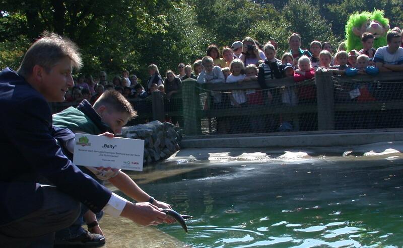 Osnabrück. Seehunde weisen als besonderes Merkmal das Fehlen eines äußeren Ohres auf. Ob ein Seehund im Zoo Osnabrück trotzdem auf seinen neuen Namen "Balty" hört, ist für die jungen Zoobesucher äußerst wichtig. Weniger wichtig für die Initiative "Graslöwen TV" der Deutschen Bundesstiftung Umwelt (DBU), die die heutige Seehundtaufe anlässlich des Starts ihrer zweiten Umweltserie "Die Hydronauten" veranlasst hat. Für sie steht die Idee im Vordergrund, ihre seit 1999 mit dem Kinderkanal (KI.KA) von ARD und ZDF laufende Initiative auch vor Ort zu verankern und in Osnabrück, dem Sitz der DBU, Zeichen zu setzen. "Wir möchten Kinder besonders im Grundschulalter über spannende Fernsehsendungen zu einem verantwortungsvollen Umgang mit ihrer Umwelt bewegen", betont Dr.-Ing. E. h. Fritz Brickwedde, Generalsekretär der DBU.