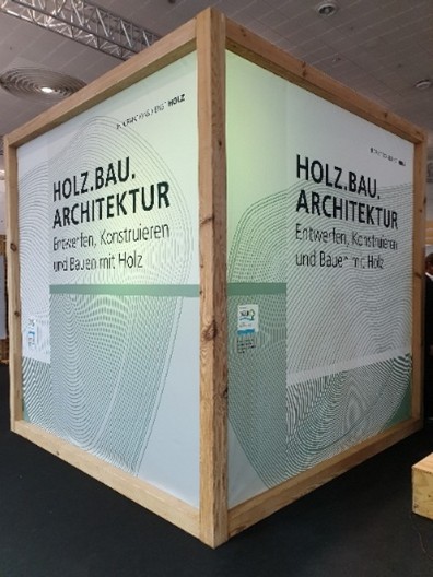 Aus diesem Grund wurde die Wanderausstellung „HOLZ.BAU.ARCHITEKTUR – Entwerfen, Konstruieren und Bauen mit Holz“ konzipiert. Sie ermöglicht es, Planer, Architekten, Bauherren und Entscheider deutschlandweit direkt zu erreichen. Die Wanderausstellung trägt dazu bei, die vielfältigen Einsatz- und Anwendungsmöglichkeiten des Baustoffs Holz sichtbar zu machen.