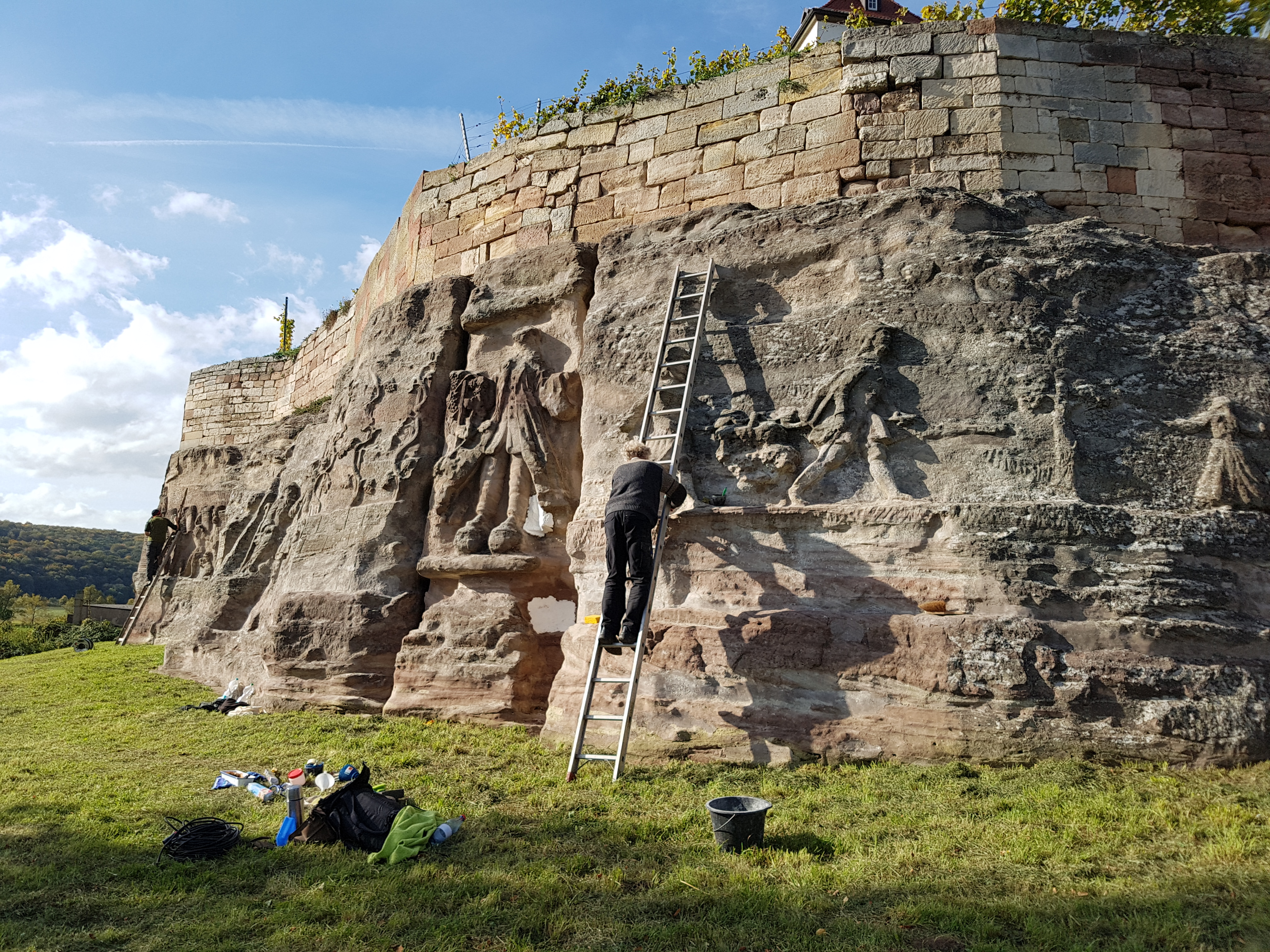 Die Arbeitsschritte des Projektes richteten sich nach den Erfordernissen bezüglich einer Optimierung des Pflegeplans. Zunächst wurden alle Reliefs durch die fokus GmbH Leipzig erneut photogrammetrisch aufgenommen, um im Abgleich mit den Aufnahmen, die die Firma 1995 bzw. 1999 gemacht hat, objektiv die Schadensdynamik zu bewerten und auch, um aktuelle Kartierungsgrundlagen zur Verfügung zu haben.
