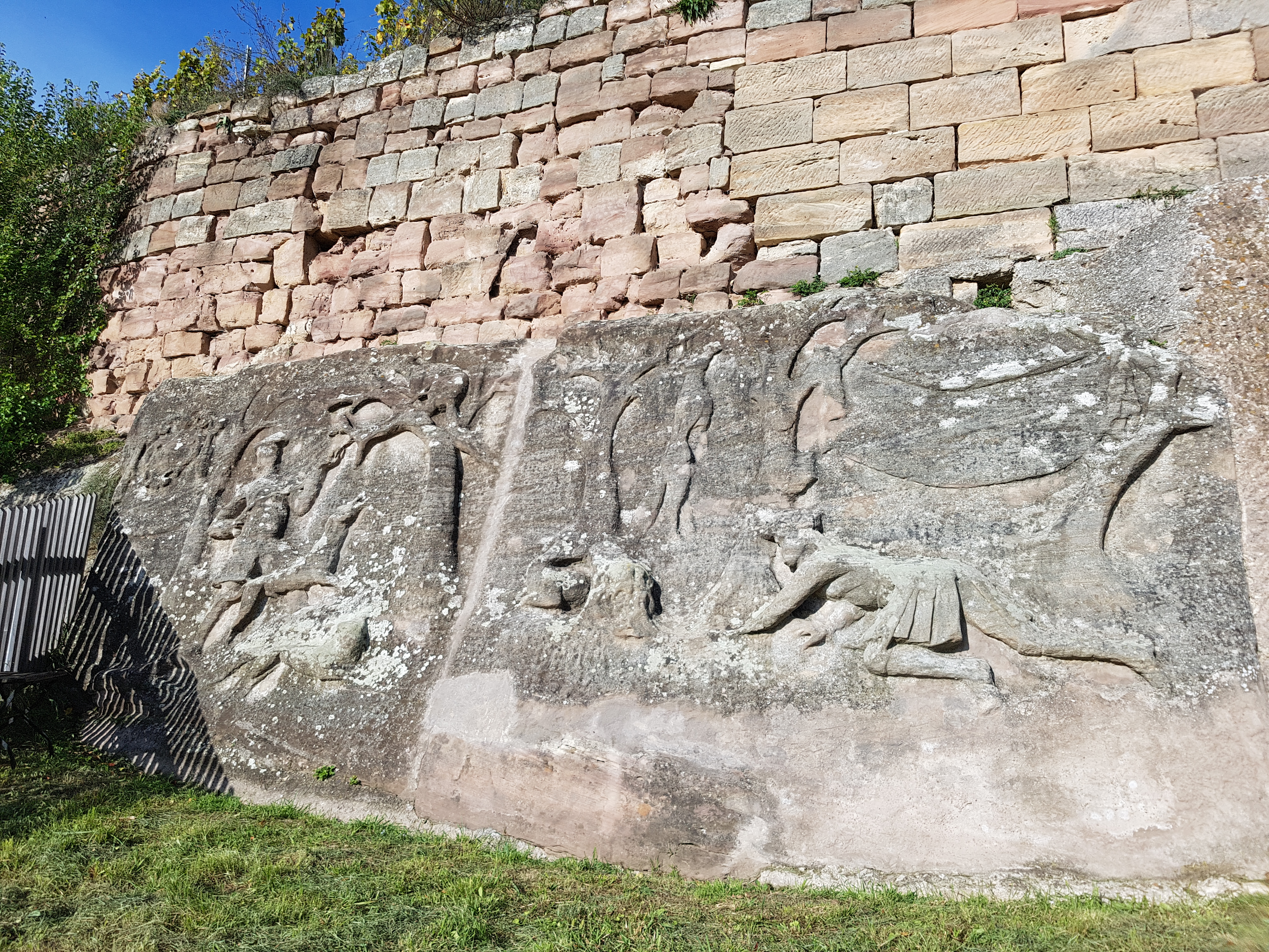 Auch die Präsentation der nicht direkt zugänglichen Reliefs entlang des in einiger Entfernung vorbeiführenden Radwegs sollte im Rahmen des Projekts optimiert werden, um perspektivisch eine bessere touristische Einbindung des Steinernen Albums und eine stärkere Identifikation der interessierten Besucher*innen zu erwirken. Man engagiert sich eher für den Erhalt einer Sache, wenn man sie kennt. Bei perspektivisch immer weniger verfügbaren finanziellen Mitteln für den Erhalt unserer Baudenkmale ist eine gute Öffentlichkeitsarbeit unerlässlich. Geplant und im Prototyp umgesetzt wurde daher, die im Maßstab 1:10 verkleinerten Reliefs im aktuellen Zustand abzuformen und als Kopie entlang des vorbeiführenden Radwegs zur präsentieren. So kann im übertragenen Sinne begreifbar gemacht werden, dass die Reliefs einerseits großartig sind, aber eben auch die Verwitterung schon viele künstlerische Informationen für immer ausgelöscht hat.