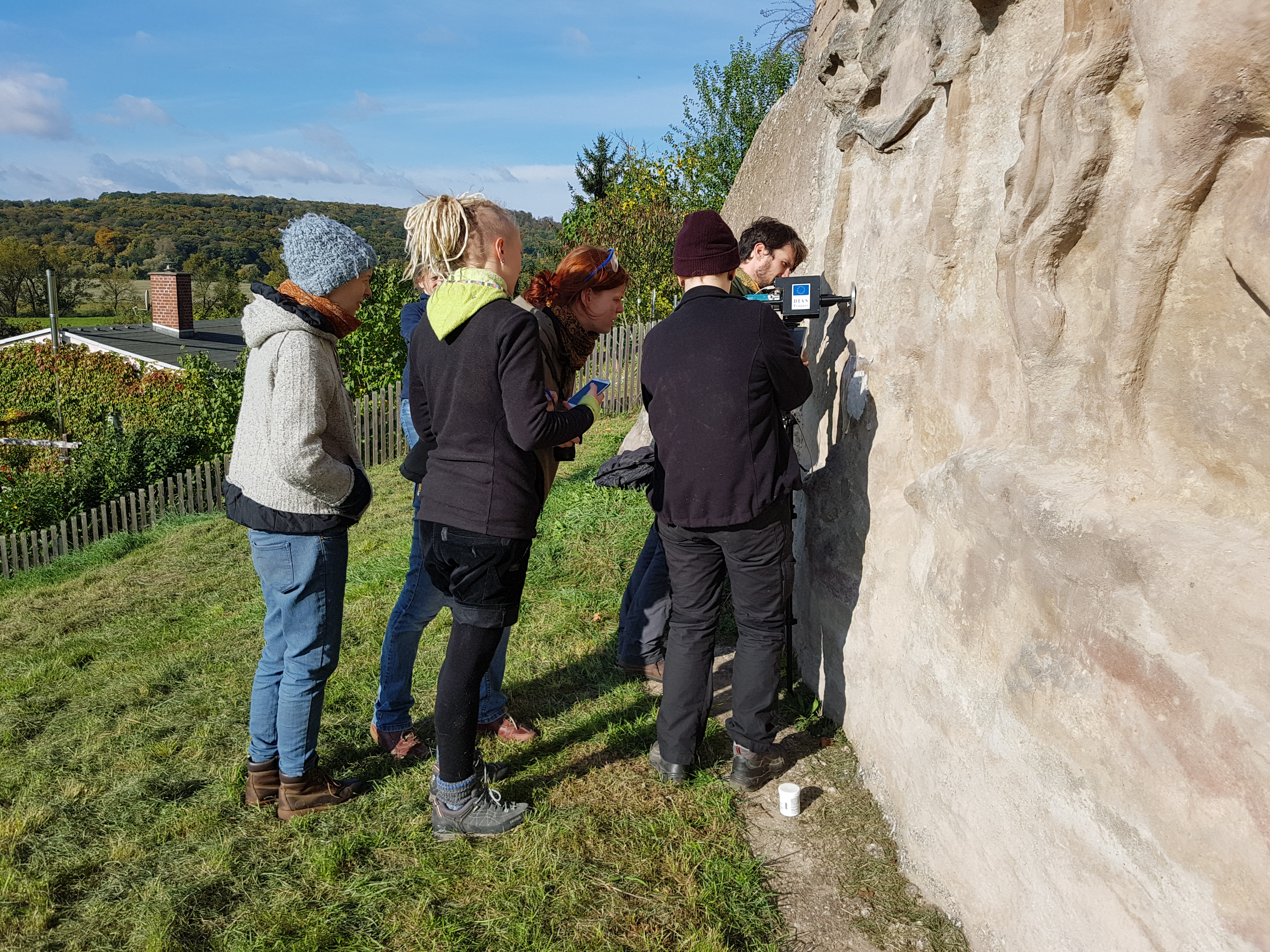 Benjamin Hübner (SoSe 2017): „Die langfristige Pflege und Erhaltung stark belasteter Objekte im anstehenden Gestein – Entwicklung eines mineralischen Kompressenputzes zum Schutz anthropogen geschädigter Oberflächen im anstehenden Gestein am Beispiel des Steinernen Albums in Großjena“