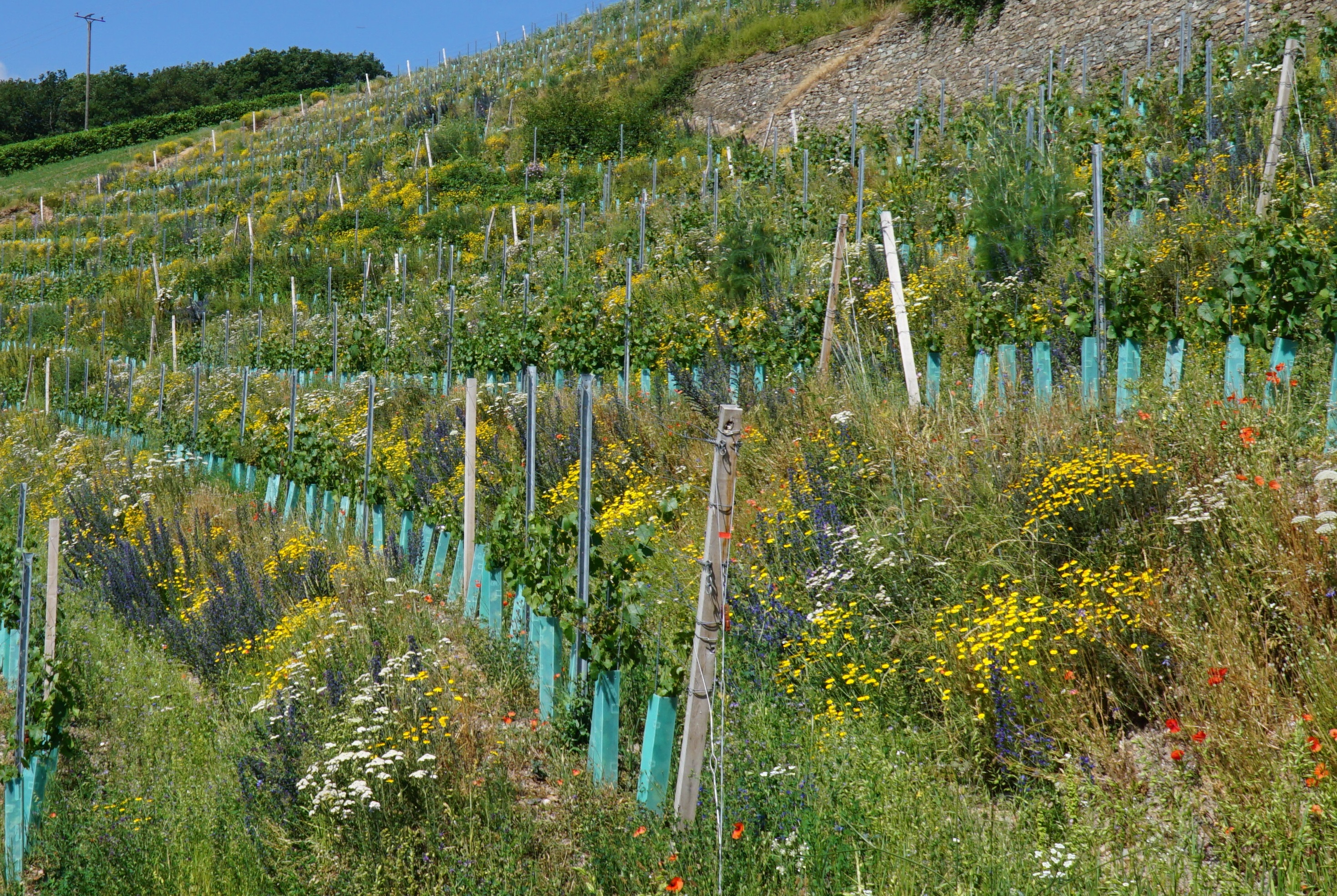 Die Ergebnisse unserer Studie zeigen, dass eine erfolgreiche Böschungsbegrünung insbesondere mit regionalem Saatgut und über Nassansaat erreicht werden kann. Ansaaten mit nicht standortangepassten Arten stellen durch ein erhöhtes Ausfallrisiko keinen langfristigen Erosionsschutz sicher. Mit einer artenreichen Begrünung der Böschungen können Querterrassen einen wesentlichen Beitrag dazu leisten, Steillagenweinbau mit Naturschutzzielen gewinnbringend zu verknüpfen.