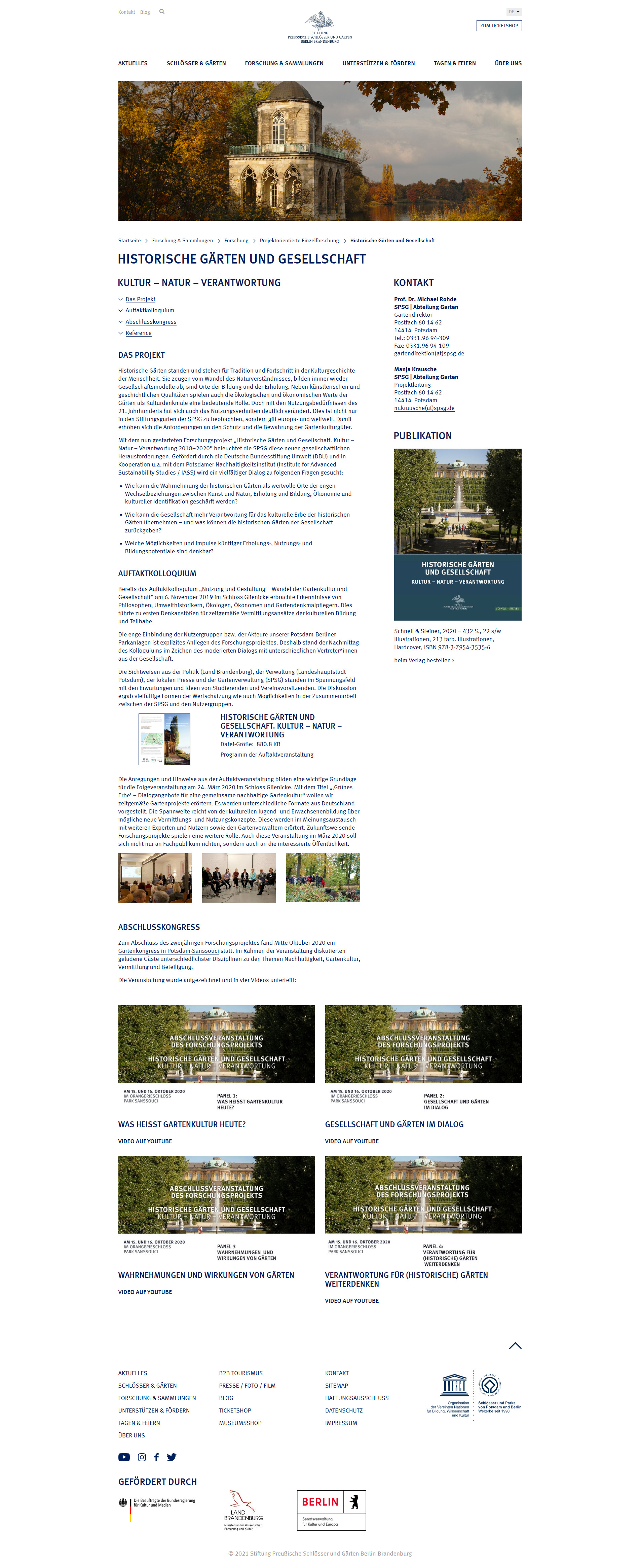 Ende 2021: Buchpublikation "Historische Gärten und Gesellschaft. Kultur – Natur – Verantwortung" in Deutsch und Englisch, Verlag Schnell & Steiner