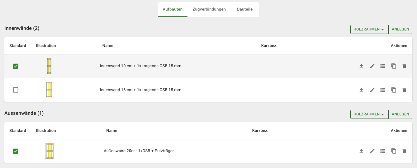Ein wesentlicher Schwerpunkt lag auf der Integration der standardisierten Aufbauten aus der dataholz-Datenbank. Diese geprüften Bauteilaufbauten und Konstruktionsdetails erleichtern den Nutzern fundierte Entscheidungen und fördern die Qualität und Konsistenz der Bauprojekte.