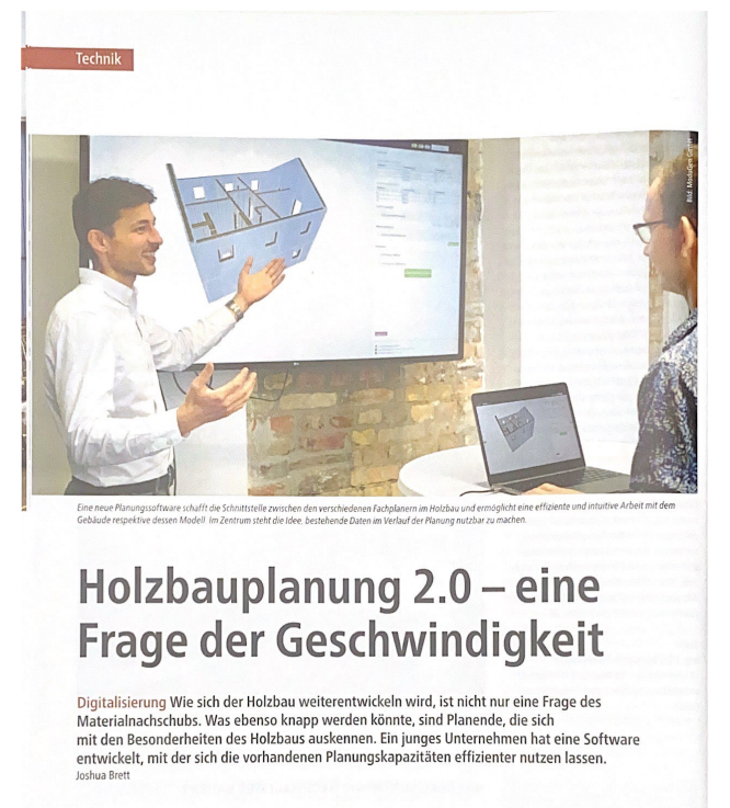 ModuGen WebsiteTechTag ArtikelDie ModuGen Software hat erfolgreich gezeigt, dass eine 3D-Planungssoftware für die Holzbau-Tragwerksplanung die Planungsgeschwindigkeit erhöht und ökologische Bewertungen verbessert. Die Integration der dataholz-Datenbank ermöglichte es, standardisierte und geprüfte Bauteilaufbauten effizient zu nutzen, was die Qualität und Konsistenz der Bauprojekte steigerte. Trotz der nicht umgesetzten Brandschutz- und Kommissionierungs-Module wurden bedeutende Fortschritte erzielt. Zukünftige Arbeiten sollten komplexere Bauvorhaben und erweiterte Anforderungen abdecken sowie ein nachhaltiges Geschäftsmodell entwickeln, möglicherweise mit Beratungsdiensten. Die Standardisierung im Holzbau und der Zugang zu praktischen Datenbanken wie dataholz müssen weiter vorangetrieben werden. Insgesamt war das Projekt ein Erfolg und legt eine solide Grundlage für zukünftige Entwicklungen im nachhaltigen Holzbau.