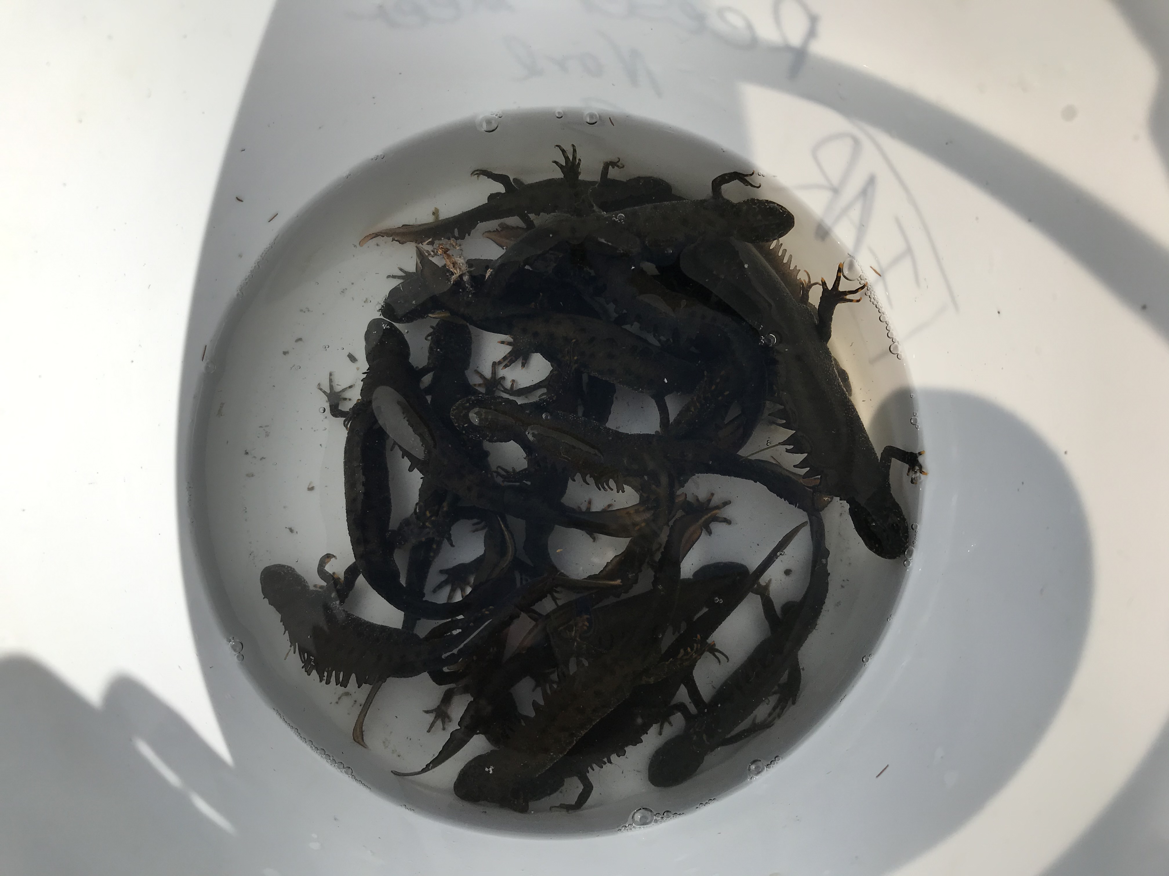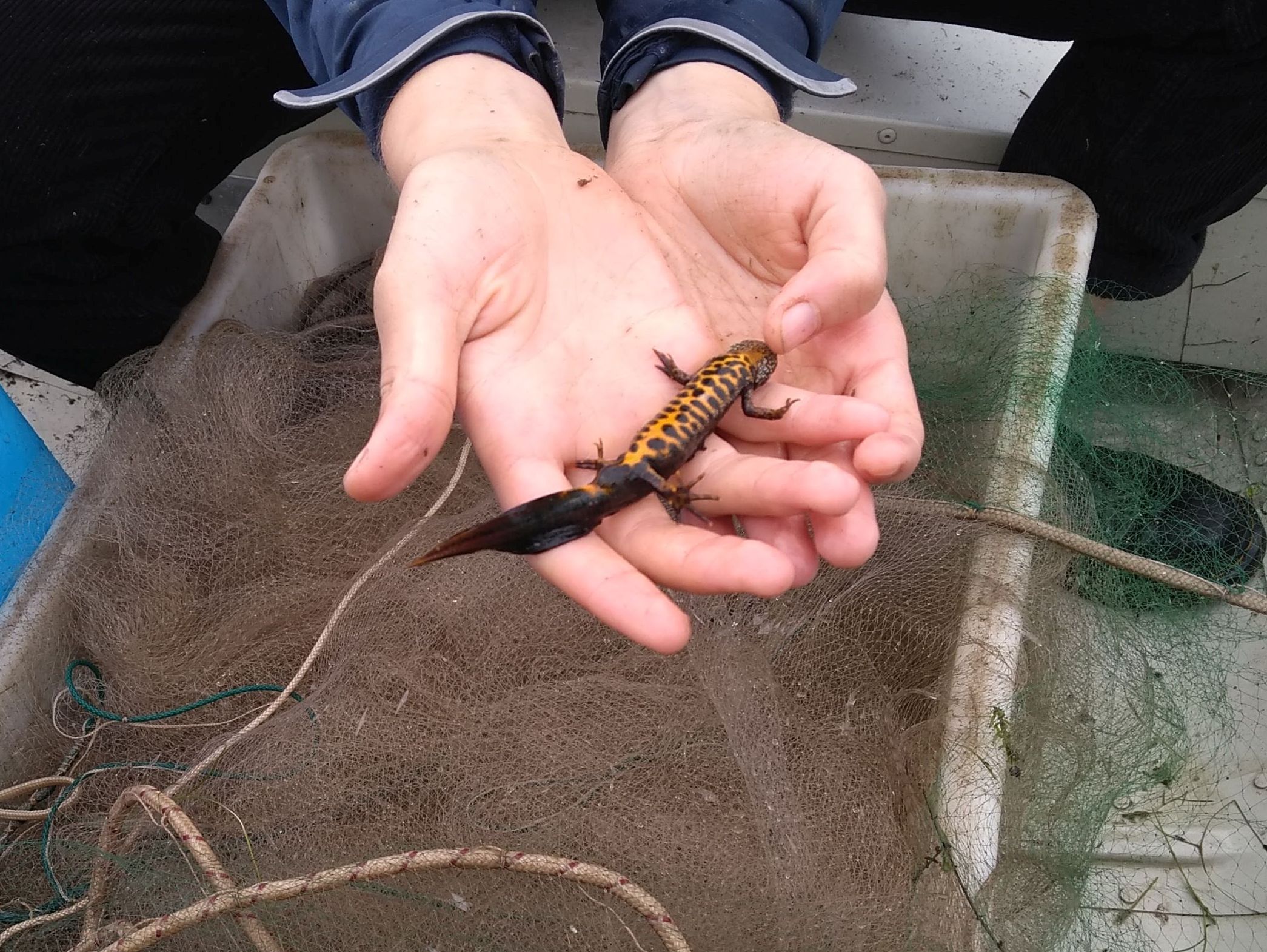 Ein Beispiel für diese Problematik lässt sich an unseren Untersuchungsgewässern darstellen. Für zwei Abgrabungsgewässer wurde detailliert dokumentiert, wie sich ein großer See ohne Fische entwickelt. Die fischfreien Seen zeichneten sich durch besonders große Formen und Quantitäten des Zooplanktons und eine sehr dichte Besiedlung mit aquatischen Makrophyten aus. Darüber hinaus wurde in beiden Gewässern eine individuenreiche Population des gefährdeten Kammmolches nachgewiesen, einer Art, die in ganz Nordrhein-Westfalen zu den gefährdeten Tierarten zählt und in der EU von gemeinschaftlichem Interesse ist (in den Anhängen II und IV der FFH-Richtlinie aufgeführt). Eine beispielsweise ursprüngliche geplante und in der Genehmigung explizit genannte Nutzung als Angel- und Wassersportgewässer steht dem nun entgegen.