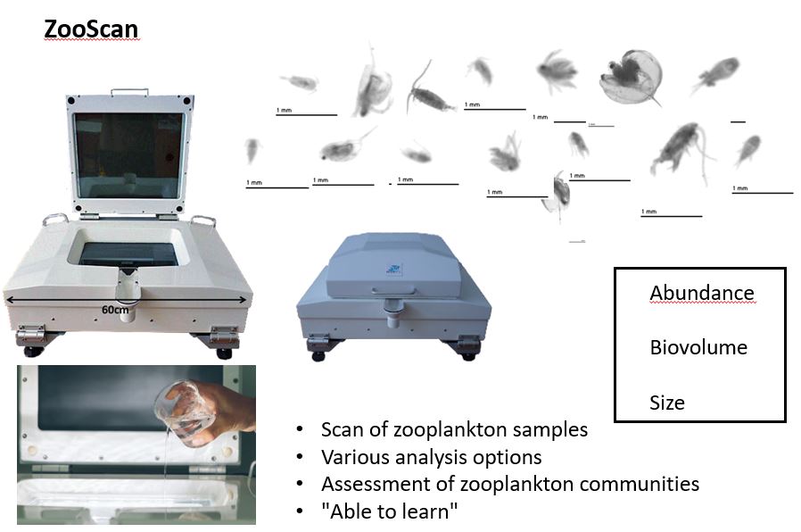 (4) Dabei soll das Zooplankton, als zentrale Organismengruppen innerhalb stehender Gewässer, mit einem neuartigen Auswertungsinstrument untersucht werden; die Ergebnisse des Projektes würden damit auch methodisch völlig neue Aspekte der routinemäßigen Analyse hinsichtlich der quantitativen Erfassung einzelner Großgruppen (z.B. Cladoceren, Copepoden) und deren indikative Größenverteilung mit modernen Analysewerkzeugen (Digitalisierung) erproben.