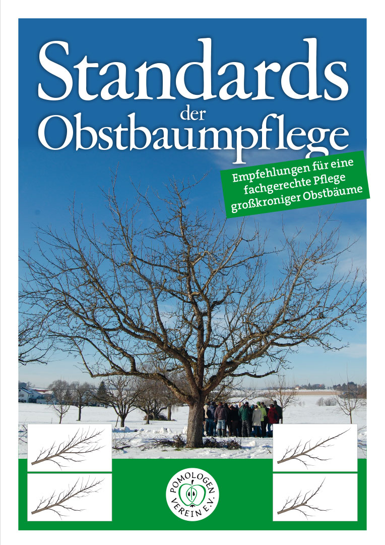 Neben dem Erhalt der genetischen Vielfalt von Obstbäumen und der Sortenkunde engagieren sich in der Arbeitsgruppe Obstgehölzpflege im Pomologen-Verein deutschlandweit anerkannte Obst-baumpfleger:innen für den Erhalt und die Pflege von Obstbäumen und Streuobstbeständen. Diese sind Kulturgüter und haben vielfältige Funktionen. Doch leider werden Obstbäume und Streuobstwiesen häufig durch fehlende oder nicht fachgerecht ausgeführte Pflege vernachlässigt bzw. nachhaltig geschädigt. Bisher fehlte ein Werk, das in kurzer, prägnanter Form typische Arbeiten in der Erziehung und Pflege hochstämmiger Obstbäume beschreibt und Qualitätsanforderungen für die beschriebenen Arbeiten formuliert. Daher hat der Pomologen-Verein beschlossen, sich diesem Thema zu widmen.