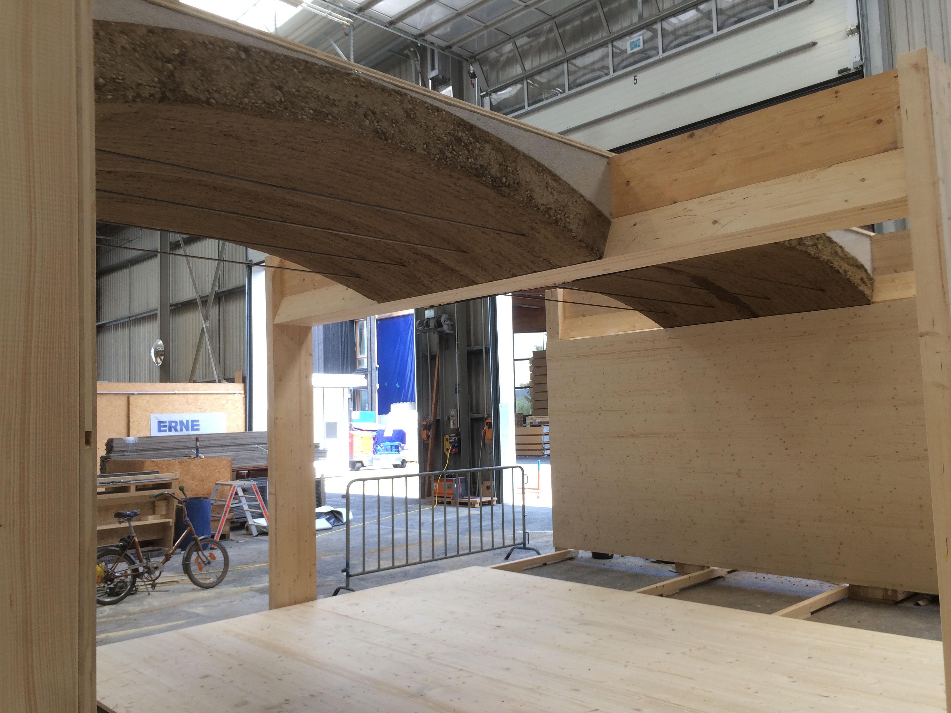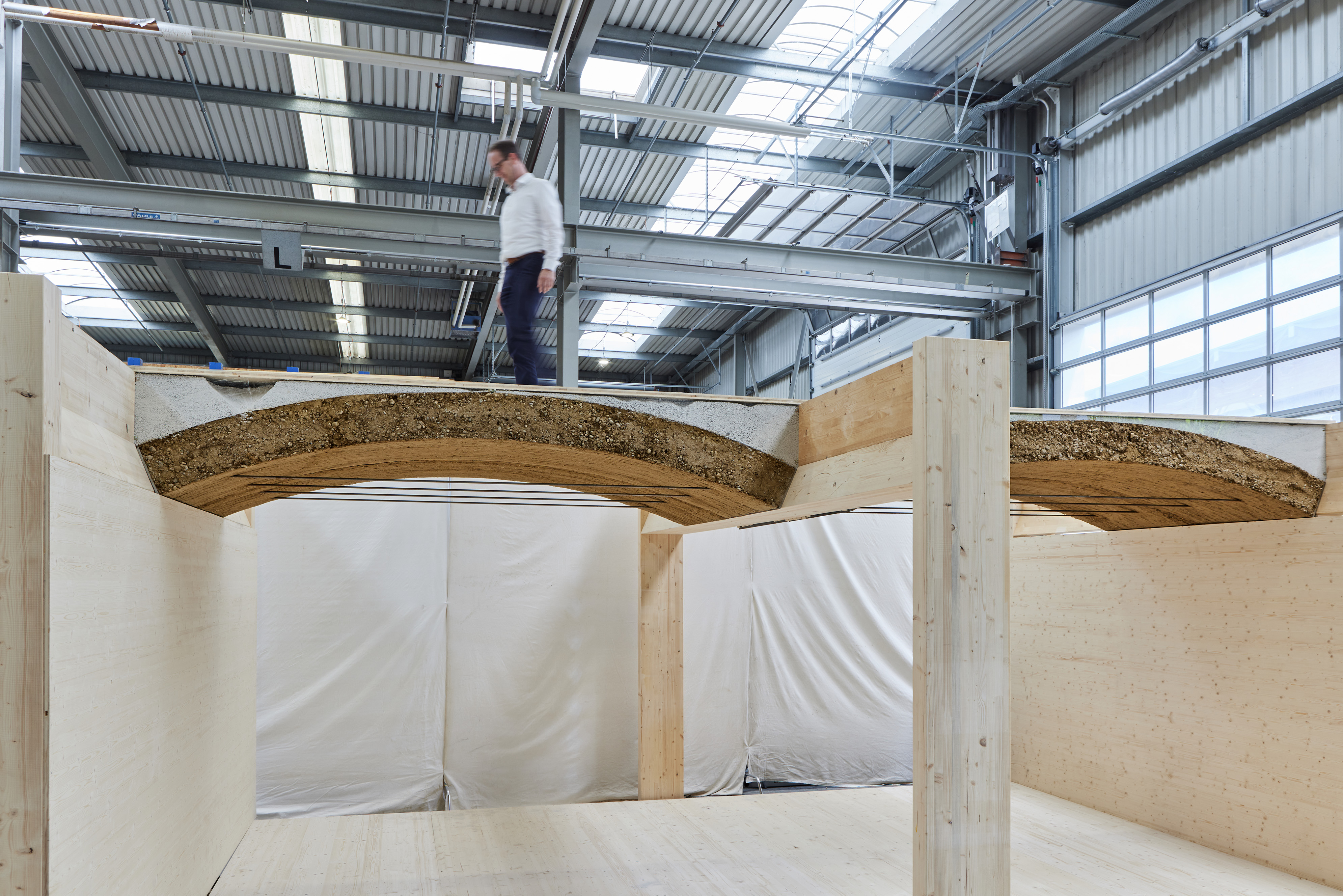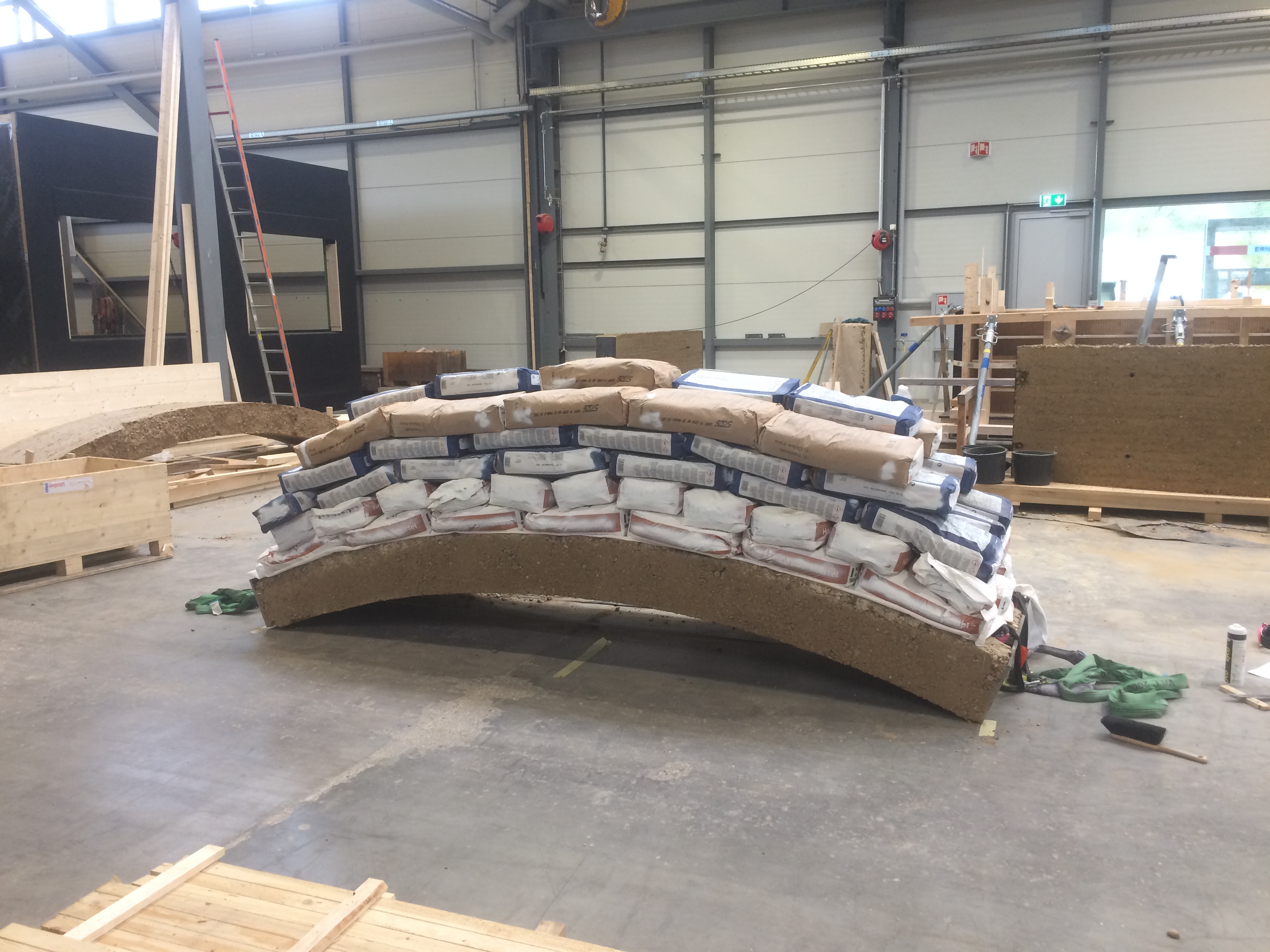 Um die Bögen aus Stampflehm erstmals in die Realität umzusetzen, wurde ein Mock-Up mit realen Abmessungen erstellt. Ein wichtiger Aspekt des Mock-Ups ist, die Konstruktion in möglichst realitätsnaher Umgebung als Geschossdecke begreifbar und erlebbar zu machen.