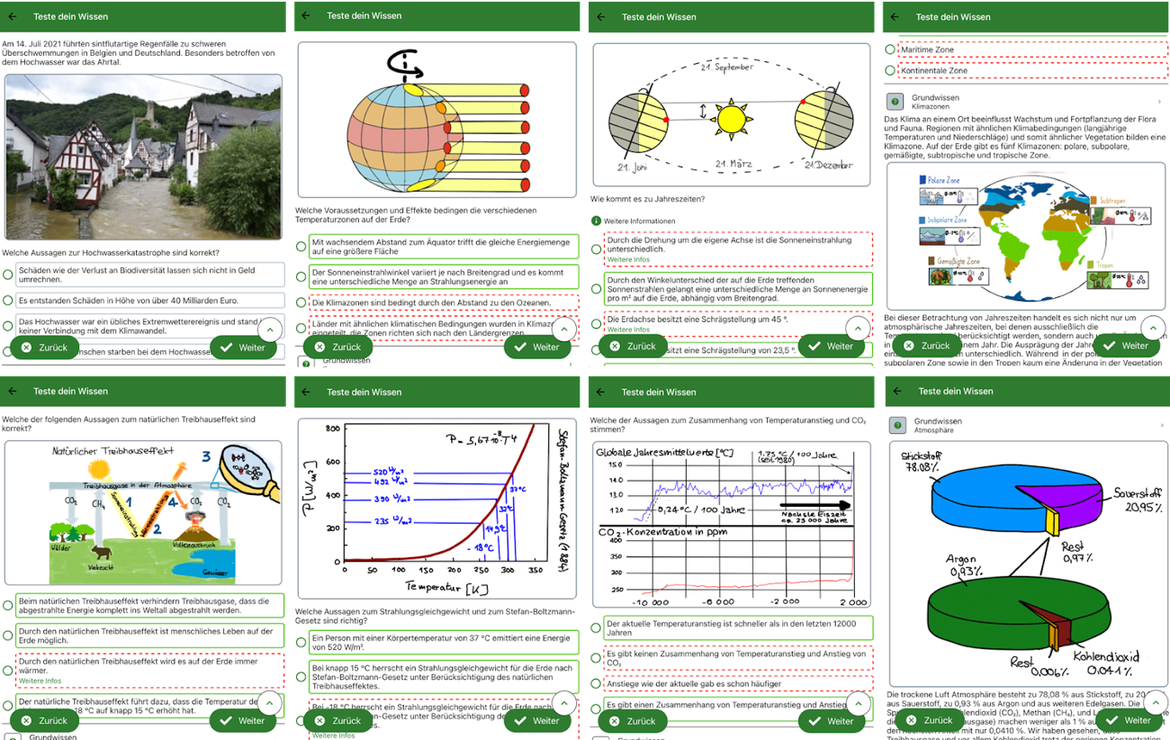 Digitale Werkzeuge ermöglichen den Zugang zu Bildungsressourcen für eine breite Nutzergruppe, unabhängig von Zeit und Ort. Sie unterstützen das pädagogische Personal bei der Organisation von Bildungsprozessen. Insbesondere multimediale, interaktive und adaptive digitale Werkzeuge können die Qualität von individuellen und kollaborativen Lehr-Lern-Prozessen verbessern. In diesem Projekt wird ein bestehender Prototyp und Fragensatz mit einer Geschichte über Nachhaltigkeit und Klimawandel an die erweiterten und transnationalen Anforderungen in Deutschland und Estland angepasst.