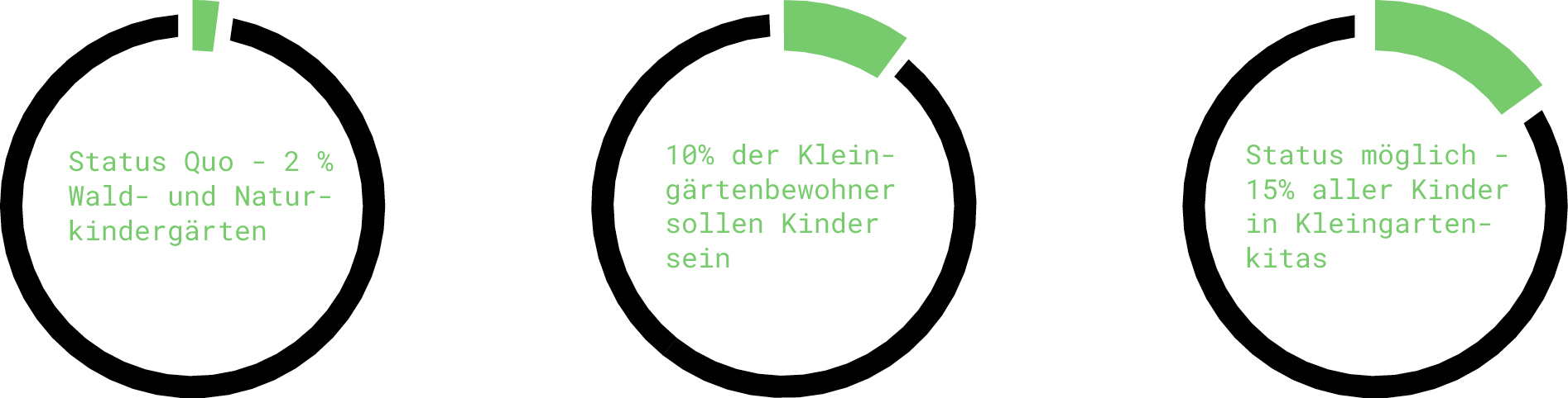 In über 13.000 Kleingartenanlagen wartet ungenutzter Freiraum um die Ecke, der für frühkindliche Bildung eingesetzt werden kann und sollte. Das wären bis zu 500.000 neue naturnahe Betreuungsplätze in ganz Deutschland.