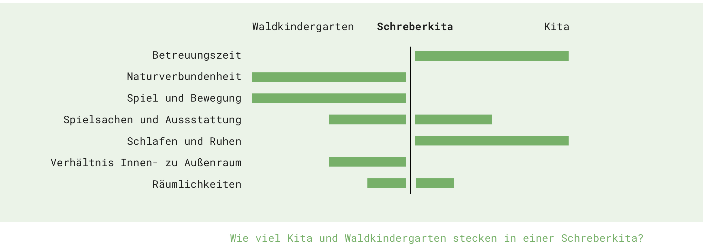 Zurück in den Naturraum: Organisierte Naturnähe durch Kombination von Haus- und Naturkita. Ganzheitlich erfahrene Realität der Jahreszeiten. Lebensweltliche Verankerung von Bildung für nachhaltige Entwicklung im Garten. Natürliches „Resilienztraining“ durch Selbstversorgung. Kinder bekommen ihren Platz, ihre Aufgaben und erleben Zugehörigkeit.