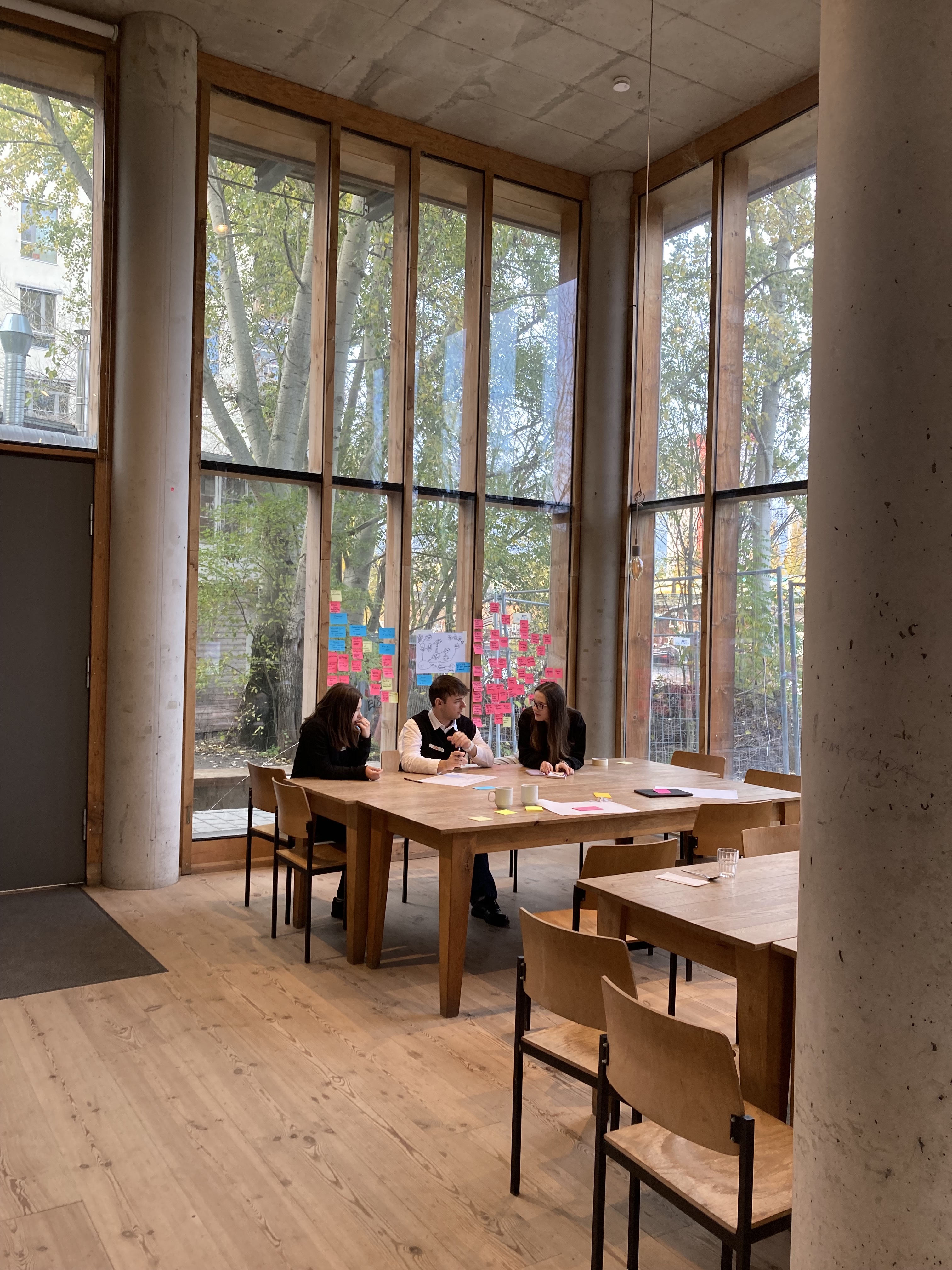 In der zweiten Projektphase haben wir zwei analoge Workshops mit Schüler*innen durchgeführt. Sie erkundeten, wie Schule aus ihrer Sicht aussehen müsste, damit sie die Herausforderungen unserer Gegenwart verstehen und eine nachhaltige Welt gestalten können.