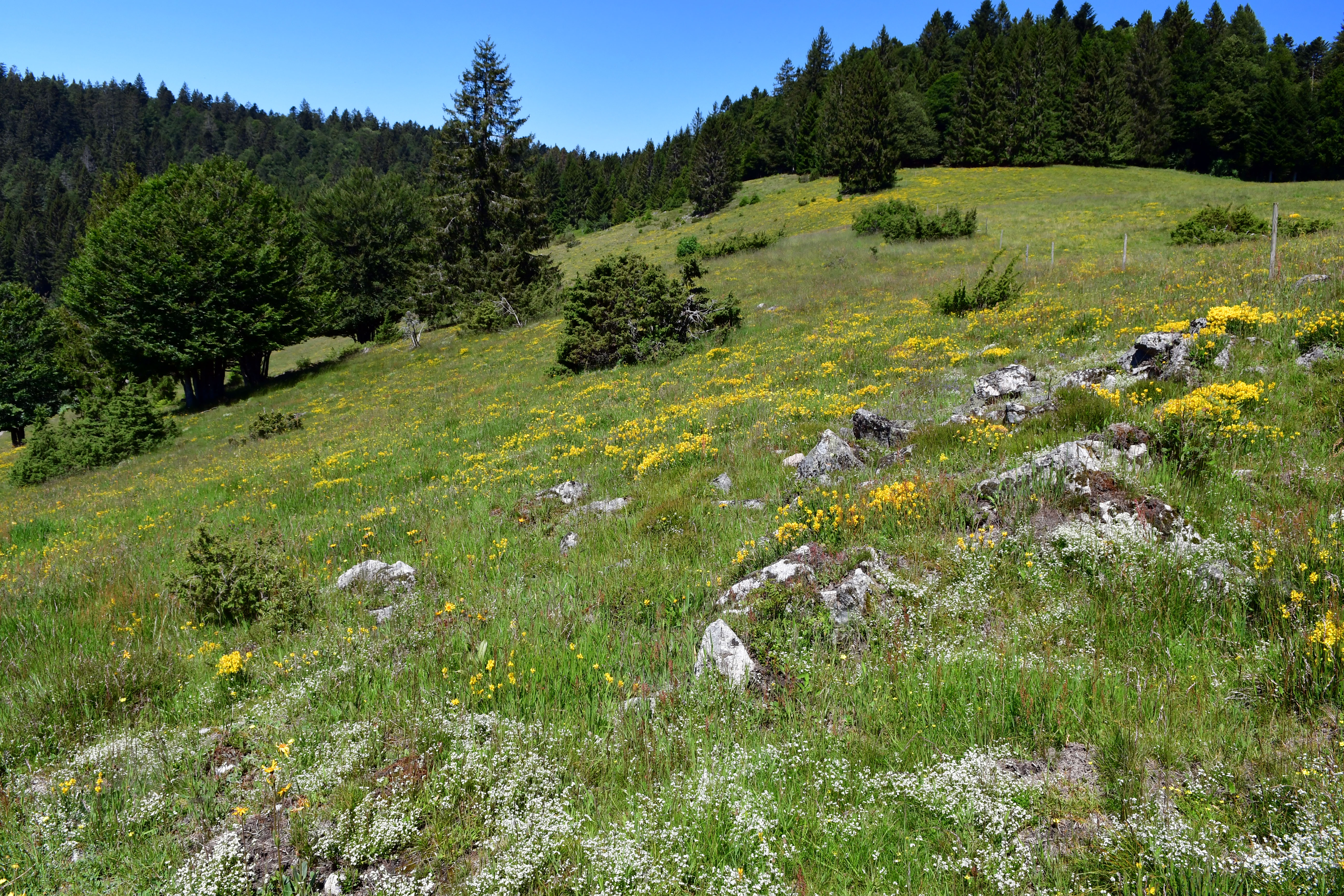 1. Biodiversitätsanalyse: Die Biodiversitätsanalyse beinhaltet die wissenschaftliche Analyse der Treiber der Artenvielfalt von Pflanzen (Gefäßpflanzen, Moose), Heuschrecken, Dungkäfern und Brutvögeln in mit Rindern beweideten und durch Borstgrasrasen dominierten Weidfeldern (heterogene Weiden, die aus Allmenden hervorgegangen sind oder immer noch als solche genutzt werden). Für die Untersuchungen werden 40 Weidfelder zufällig ausgewählt. Bei Dungkäfern werden neben der Artenvielfalt auch die Abundanzen und die Biomasse untersucht. Die Erfassung der Taxa erfolgt anhand wissenschaftlich anerkannter Standardmethoden.