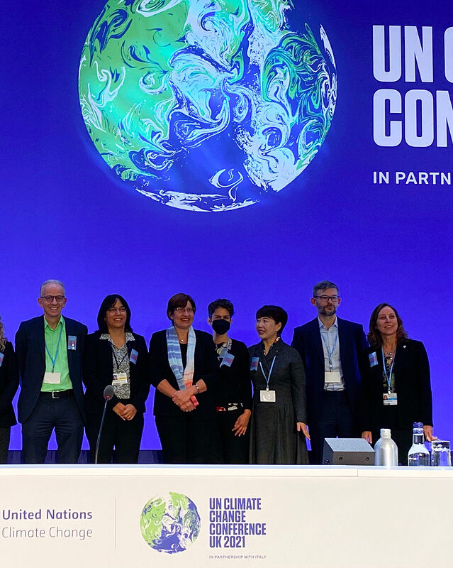 Umweltpreisträgerin Prof. Dr. Sonia I. Seneviratne (zweite von links) auf der Weltklimakonferenz COP 26 in Glasgow 2021