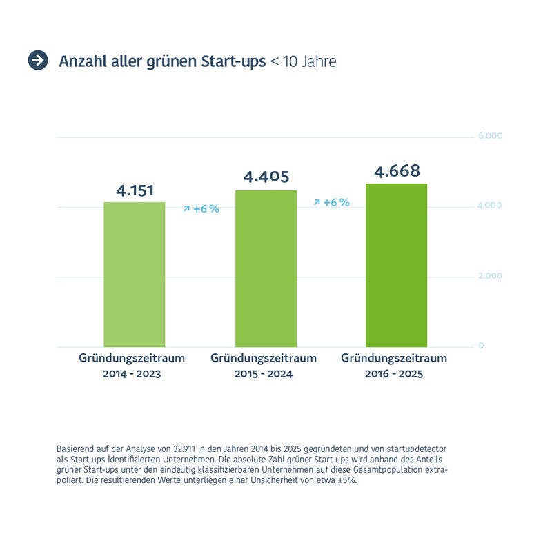 Grafik des Green Startup Reports 2026: Anzahl aller Startups in Vergleichszeiträumen
