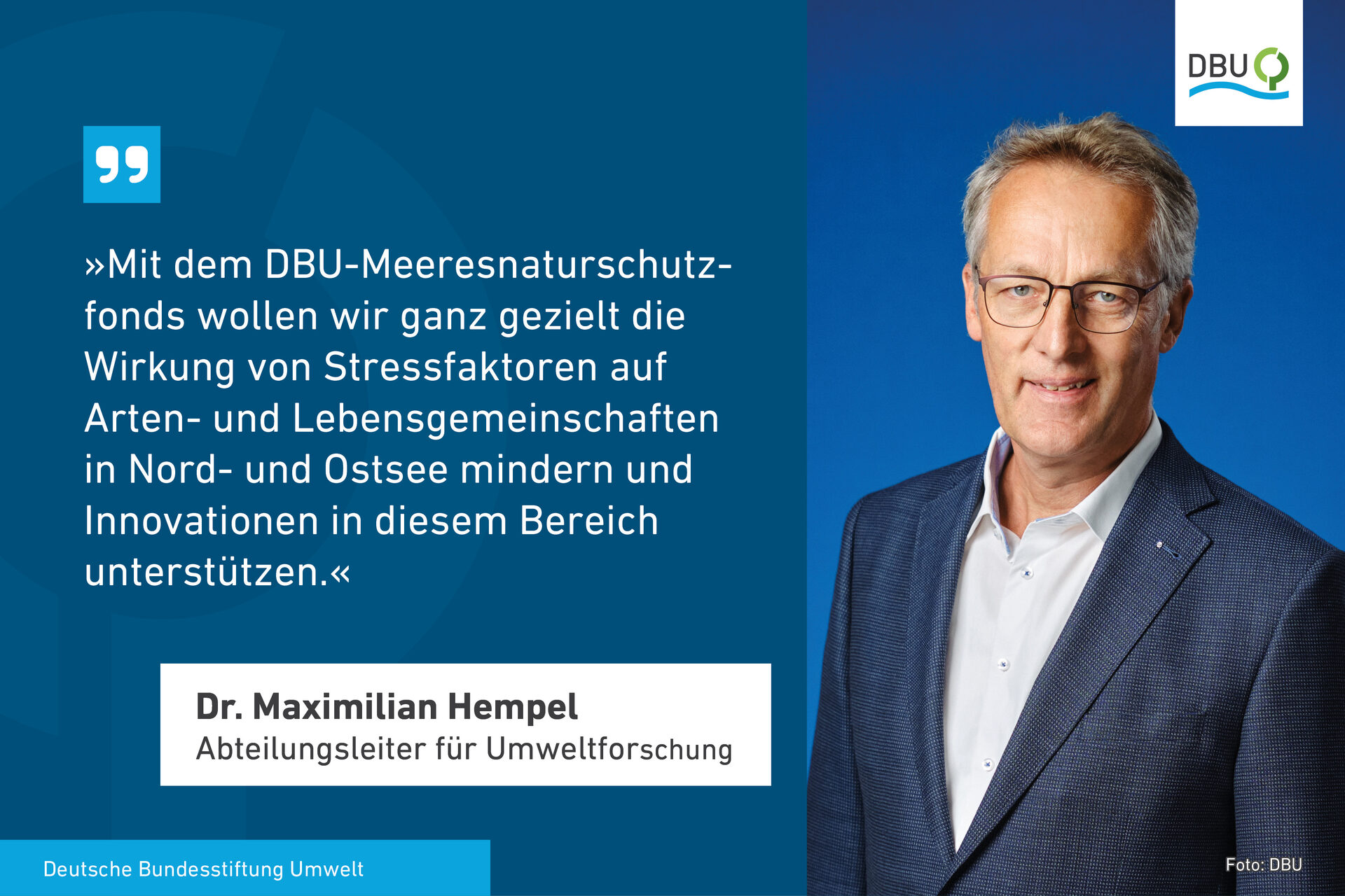 Am 19. Dezember 2024 fiel der Startschuss für den DBU-Meeresnaturschutzfonds. DBU-Generalsekretär Alexander Bonde enthüllte in Berlin gemeinsam mit der damaligen Bundesumweltministerin Steffi Lemke das Logo für das neue Förderthema. Der Haushaltsausschuss des Deutschen Bundestages hatte am 3. Juli 2024 beschlossen, einen Teil der Auktionserlöse für Offshore-Windkraft-Lizenzen, die für den Meeresnaturschutz gedacht sind, bei der Bundesstiftung Umwelt zweckgebunden anzulegen.