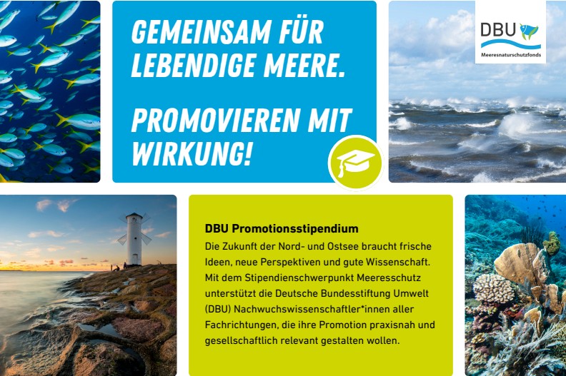 Mehr zum Wollhandkrabben-ProjektIm Rahmen ihres Promotionsstipendienprogramms hat die DBU einen interdisziplinären Förderschwerpunkt eingerichtet. Dieser orientiert sich an den Zielen der UN-Ozeandekade und widmet sich den Herausforderungen des Schutzes von Nord- und Ostsee im Spannungsfeld von Nutzung und Belastung. Seit September 2025 können sich deutsche Hochschulabsolvent*innen um eine Förderung bewerben. Gesucht werden Promotionsvorhaben aus einem breiten Themenspektrum des marinen Umweltschutzes – von biodiversitäts- und technologiebasierten Ansätzen bis hin zu gesellschaftlichen, ökonomischen und kommunikativen Fragestellungen.