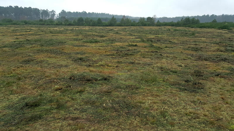 „Zunehmend wuchsen junge Bäume und Sträucher auf dem stillgelegten Schießplatz. So drohte die Heidelandschaft zu verschwinden“, sagt Bastian. In diesem Jahr unterstützte ein Traktor mit Forstmulchgerät die Weidetiere. Die Maschine schnitt dabei in einem Vorgang Ginster, Traubenkirschen und junge Kiefern im Offenland ab, um sie sofort auch zu häckseln. Kleine Baumgruppen und Einzelbäume seien von den Mulcharbeiten ausgenommen, um Nist- und Rückzugsorte für Vögel und andere Tiere zu erhalten. „Das bereits zugewachsene unebene Gelände war nicht einfach zu befahren. Der Forstservice hat die Arbeiten jedoch erfolgreich abgeschlossen. Nun können wieder unsere tierischen Landschaftspfleger ans Werk“, resümiert die Revierleiterin.