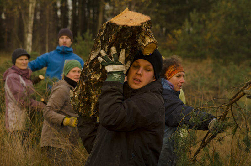 Würzburg/Osnabrück. Seit 2010 leisten DBU Naturerbe GmbH und Bergwaldprojekt e.V. einen gemeinsamen Beitrag zum Naturschutz. In diesem Herbst besuchten die freiwilligen Helfer des Bergwaldprojektes das DBU Naturerbe Prora sowie die Cuxhavener Küstenheiden, um dort verschiedene Pflegemaßnahmen für den Wald und die Offenlandflächen durchzuführen. Jeweils eine Woche lang mähten und entbuschten rund 20 Teilnehmer aus ganz Deutschland die ehemals militärisch genutzten Flächen, die von der DBU Naturerbe GmbH, einer gemeinnützigen Tochtergesellschaft der Deutschen Bundesstiftung Umwelt (DBU), gemeinsam mit den ortskundigen Bundesförstern betreut werden. Zurzeit fördern die Freiwilligen die Verjüngung der Kiefernforste in der Kühnauer Heide.