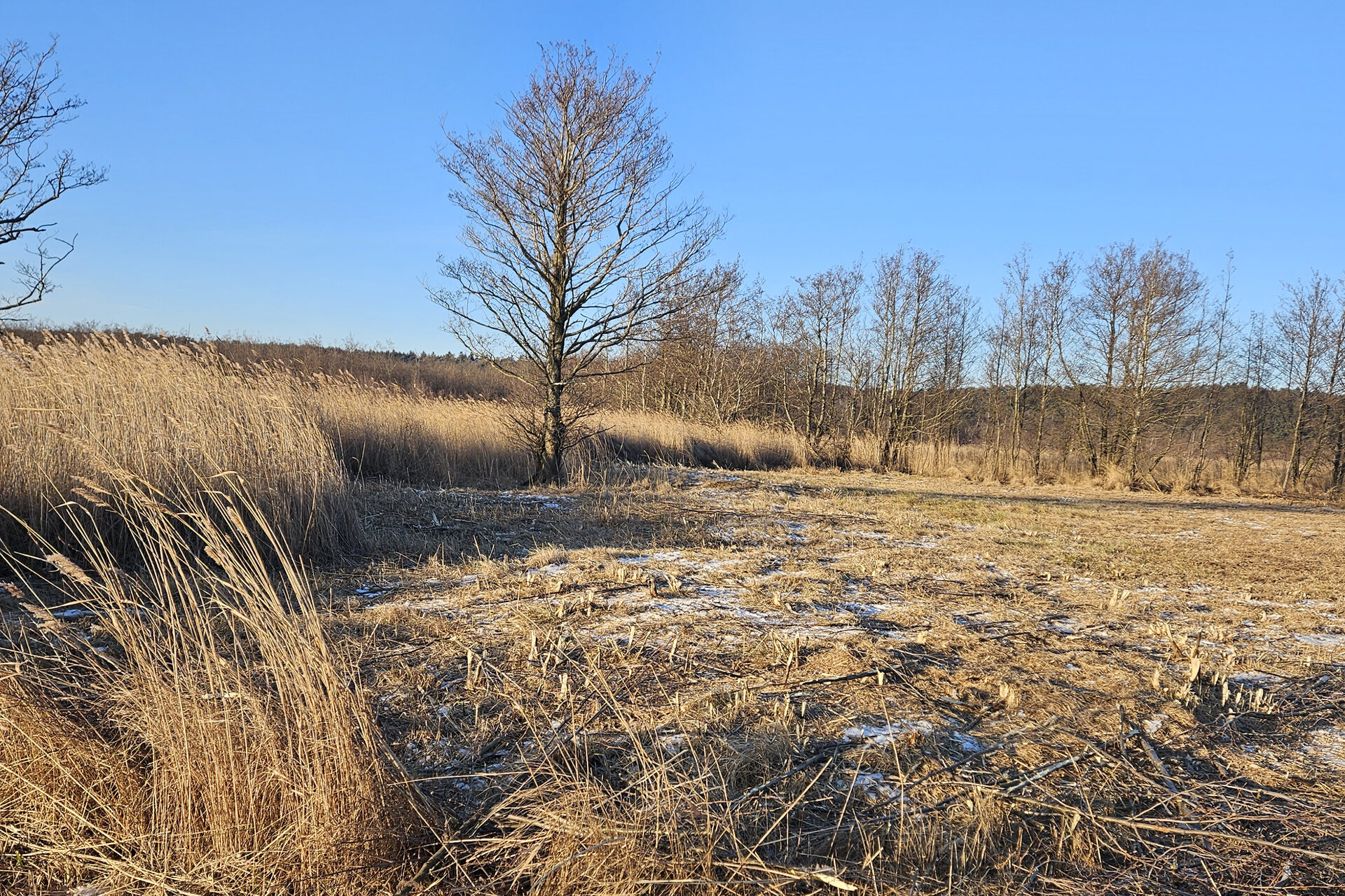 In der Vergangenheit hielt die extensive Nutzung des Schilfrohrs als wertvolles organisches Baumaterial das Feuchtgebiet offen. Nun übernimmt das DBU Naturerbe diese aufwendige Pflegemaßnahme.