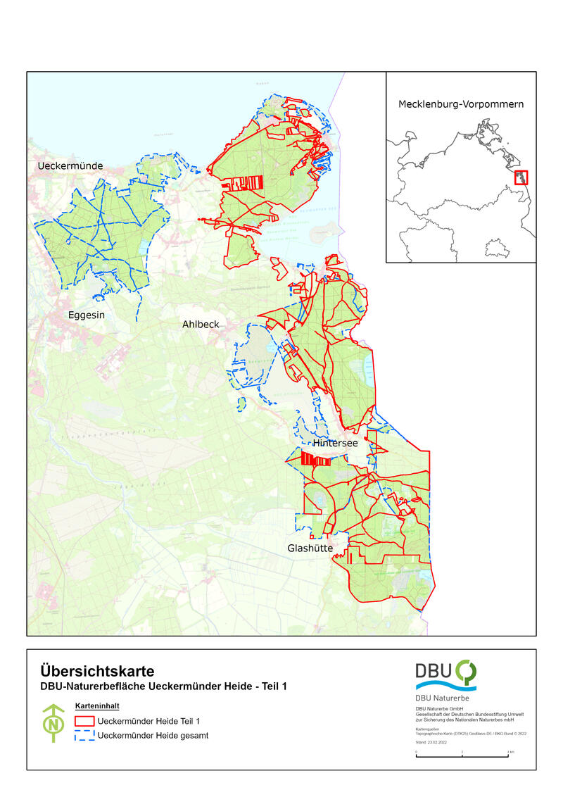 Ueckermünde. Wer im Wald am Stettiner Haff und entlang der polnischen Grenze bis hinunter nach Glashütte unterschiedlich alte Laub- und Nadelbäume sieht, und an anderer Stelle über mager wirkende Wiesen schaut – der hat schon zwei Besonderheiten im DBU Naturerbe Ueckermünder Heide entdeckt. Denn ungedüngtes, also nährstoffarmes Offenland ist in Deutschland selten geworden, und auch heimische Mischwälder mit Bäumen unterschiedlichen Alters dienen dem Naturschutz. Das ehemalige Übungsgelände bietet beides und somit wichtige Lebensräume für zahlreiche seltene Tier- und Pflanzenarten. Seit 2012 gehört der Teilbereich rund um die Halbinsel Altwarp, der Bereich zwischen dem Ahlbecker Seegrund und der polnischen Grenze sowie im Süden Teile des Naturschutzgebietes Gottesheide mit Schloßsee und Lenzener See der gemeinnützigen Tochtergesellschaft der Deutschen Bundesstiftung Umwelt (DBU), dem DBU Naturerbe. Wie rund die Hälfte der insgesamt über 9.700 ha großen Naturerbefläche in den kommenden zehn Jahren geschützt und weiterentwickelt werden soll, wird nun in dem fertiggestellten Naturerbe-Entwicklungsplan beschrieben.