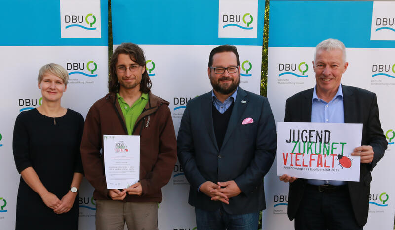 Schmidt hatte sich damals für den Jugendkongress Biodiversität beworben, „weil ich im Umweltschutz tätig bin und schon an mehreren Kongressen der DBU teilgenommen hatte.“ Der Jugendkongress wurde im Juni 2017 bereits zum dritten Mal von DBU, BMU und BfN veranstaltet. In den drei Tagen setzten sich 180 Jugendliche zwischen 16 und 27 Jahren aus dem gesamten Bundesgebiet mit dem Thema Artenvielfalt auseinander. Ziel dabei war es nicht nur, in Workshops mehr darüber zu erfahren, sondern auch gemeinsam zu diskutieren und konkrete Projekte für den Erhalt der biologischen Vielfalt zu entwickeln. Die damalige Bundesumweltministerin Dr. Barbara Hendricks, BfN-Präsidentin Prof. Beate Jessel und der damalige DBU-Generalsekretär Dr. Heinrich Bottermann standen den Jugendlichen zudem Rede und Antwort. Die Besonderheit: Der Kongress wurde maßgeblich von den Jugendlichen und jungen Erwachsenen selbst geplant, organisiert und durchgeführt.