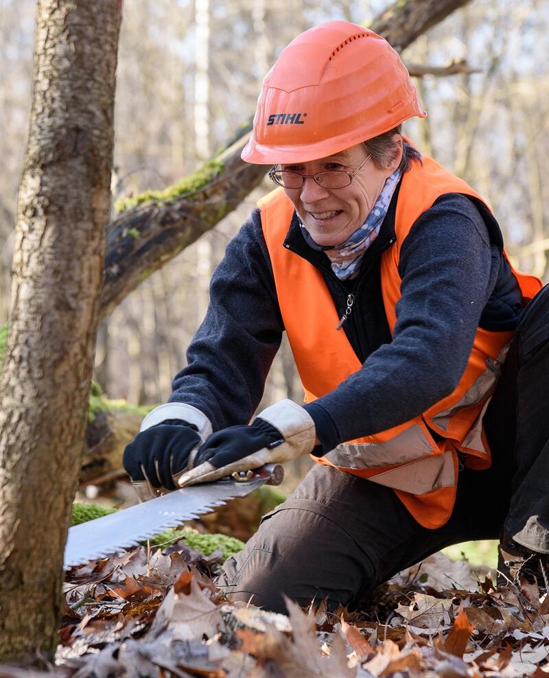 Oberasbach. 14 freiwillige Helferinnen und Helfer aus ganz Deutschland nutzen ihre Freizeit, um sich im praktischen Naturschutz zu engagieren: Vom 13. bis zum 19. Februar ist der Verein Bergwaldprojekt zu Gast auf der DBU-Naturerbefläche Hainberg in der Nähe von Fürth. Eine Woche lang leisten die Teilnehmenden einen persönlichen Beitrag, um dort beispielsweise die Spätblühende Traubenkirsche zu bekämpfen. Mit den aktuellen Problemen der Ökosysteme vor Augen soll der Einsatz die Freiwilligen auch für eine nachhaltige Lebensweise in ihrem Alltag sensibilisieren.