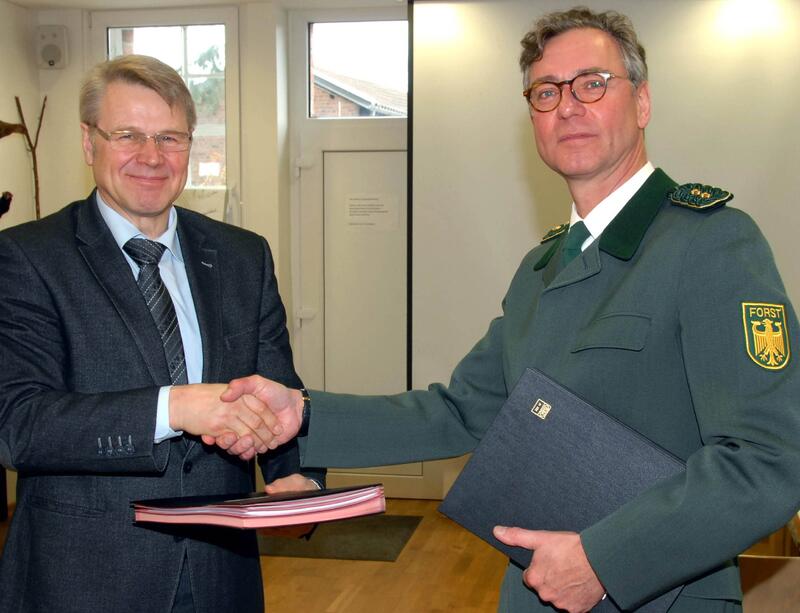 Köln. Was sich bewährt hat, pflegt man. Bereits seit 2008 sind die Beschäftigten von Bundesforst, Geschäftsbereich der Bundesanstalt für Immobilienaufgaben (BImA), als Dienstleister für die DBU Naturerbe GmbH tätig, um die rund 45.000 Hektar Naturerbeflächen mit zu verwalten und zu managen. Nun soll die Zusammenarbeit, die vor gut fünf Jahren in einem Dienstleistungsvertrag vereinbart wurde, fortgesetzt und erweitert werden: um rund 15.000 Hektar Naturerbeflächen, die in einer zweiten Tranche im Mai 2013 aus dem Immobilienbesitz des Bundes an die DBU übertragen wurden. Dazu unterzeichneten beide Organisationen im Rahmen einer Fachveranstaltung am Dienstag, 25. Februar, im Gut Leidenhausen in der Wahner Heide einen erneuerten Dienstleistungsvertrag.
