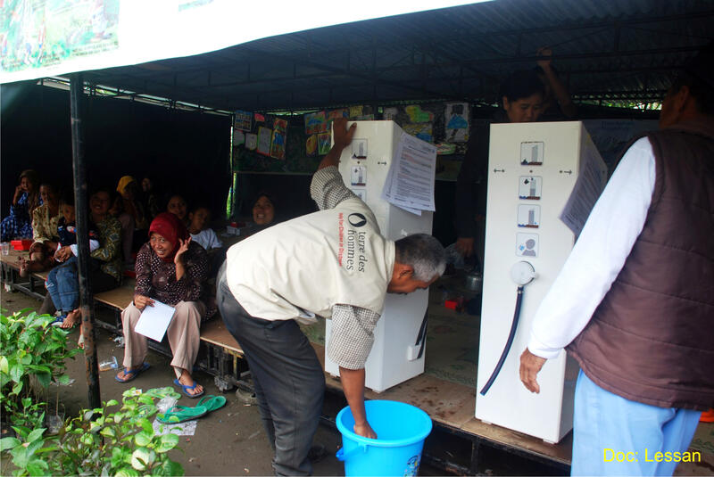 In Indonesien leben nach dem Ausbruch des Vulkans „Merapi“ im November vergangenen Jahres rund 300.000 Menschen in etwa 80 Notunterkünften unter schlechten hygienischen und sozialen Bedingungen. Insbesondere die sanitären Einrichtungen und die Trinkwasserversorgung seien unzureichend, so Sacher: „Darunter leiden vor allem die rund 80.000 Kinder; knapp die Hälfte von ihnen hat Durchfall, fieberhafte Infektionen und Hautausschläge, die ganz überwiegend auf unsauberes Wasser und mangelnde Hygiene zurückzuführen sind.“ Hier helfe die terre des hommes-Partnerorganisation „Lessan“ und setze den Wasserrucksack ein. Lessan unterstütze in provisorischen Camps mehrere tausend Menschen, vorwiegend Schulkinder und Kleinkinder, aber auch schwangere Frauen und alte Menschen. Der Vorteil des Wasserrucksacks liege auf der Hand, so Danuta Sacher: „Nicht die Menschen müssen zum Wasser kommen, sondern das Wasser kommt zu ihnen, und das in zuverlässiger und lebensschützender Qualität. Ich finde, das ist eine tolle Innovation.“