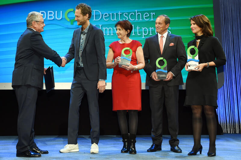 In einer von „Tagesschau“-Sprecherin Judith Rakers moderierten Gesprächsrunde gingen als Mitglieder der Jury des Deutschen Umweltpreises, auf deren Vorschlag hin das Kuratorium der Stiftung die jeweiligen Preisträger eines Jahres auswählt, Prof. Dr. Katharina Hölzle, Inhaberin des Lehrstuhls für Innovationsmanagement und Entrepreneurship der Universität Potsdam, und Max Schön, Präsident der Deutschen Gesellschaft Club of Rome, auf die Leistungen der Preisträger 2016 ein. Hölzle und Schön betonten, alle drei Preisträger lösten „vertrackte Probleme“, für die es keine einfachen Lösungen gebe, mit unglaublich viel Mut, Engagement, Idealismus und gegen zahlreiche Widerstände. Als Macher und Idealisten schafften sie es, Lösungen umzusetzen und die sehr komplexen Nachhaltigkeitsziele der Vereinten Nationen konkret anzupacken.