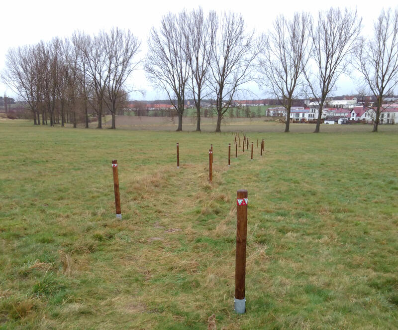 Bei den Wegen, die abgekoppelt werden, handelt es sich zum einen um die Strecke von den sogenannten Donauwellen zum Wegekreuz im Süden der Fläche und zum anderen um die Strecke entlang der Kleingewässer am Ehlerberg im Osten des DBU-Areals. „Zum Schutz der Natur sollen Besucher diese beiden Wegabschnitte umgehen, da beispielsweise in den Tümpeln am Ehlerberg seltene Amphibien wie die Kreuzkröte sowie der Kamm- und der Bergmolch leben“, bittet Belting um Verständnis. Die offenen Sandmagerflächen entlang dieser Wege und Gewässer bieten einen Lebensraum für Vogelarten wie Neuntöter, Schwarzkelchen und Kiebitz. Als Alternativstrecke hatten Landkreismitarbeiter den parallel verlaufenden Wiesenweg mit Holzpfählen ausgepflockt. „Diesen Pfad können wir nicht verbreitern, weil wir dort durch einen seltenen Lebensraum wandern, den die Europäische Union in vollem Umfang als zu erhalten eingestuft hat“, erläutert Silke Krause von der Unteren Naturschutzbehörde im Kreis Wolfenbüttel. Der Landkreis und die DBU können sich jedoch vorstellen, die Anzahl der Pflöcke weiter zur verringern, wenn der Weg gut etabliert ist.
