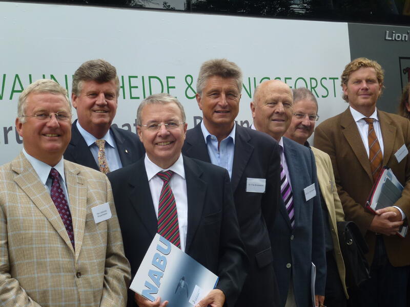 2.200 Hektar der Wahner Heide gehören der gemeinnützen Tochter der Deutschen Bundesstiftung Umwelt, der DBU Naturerbe GmbH, die zusammen mit dem Forum und der NRW-Stiftung zu der Rundfahrt eingeladen hatte. DBU-Generalsekretär, Dr. Fritz Brickwedde, der auch Geschäftsführer der DBU Naturerbe GmbH ist, war denn auch eigens aus Osnabrück, dem Sitz von Europas größter Umweltstiftung, angereist. „Dies ist ein neues Kapitel der Zusammenarbeit mit der Bundesstiftung Umwelt“, sagte er und verwies auf die knapp 1.300 Projekte, die die Stiftung mit 200 Millionen Euro bisher in Nordrhein-Westfalen unterstützt hat. Bei der Stiftung stünde die Projektförderung im Mittelpunkt. In der Wahner Heide sei die DBU Naturerbe GmbH als Flächeneigentümerin aber jetzt langfristig vor Ort aktiv.