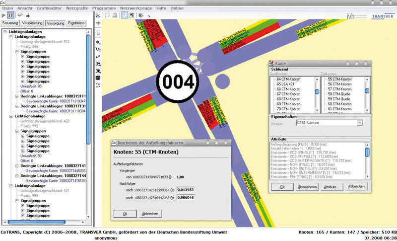 Müssen Fahrzeuge vor Ampeln ständig anhalten und anfahren, erhöht sich der Schadstoffausstoß verglichen mit dem fließenden Verkehr. Um hier Abhilfe zu schaffen, haben das Verkehrsforschungsunternehmen TRANSVER GmbH (München) und das Institut für Verkehrswirtschaft, Straßenwesen und Städtebau der Universität Hannover eine Software entwickelt, welche die Anzahl der Halte von Kraftfahrzeugen an Ampeln minimieren und den Verkehrsfluss verbessern kann. Gleichzeitig werden damit die verkehrsbedingten Emissionen vermindert. Mit der neu entwickelten Methode können auch die Ampeln an komplexen Straßenkreuzungen für ganze Stadtviertel aufeinander abgestimmt werden.