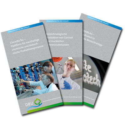 In der Reihe »Innovationen für die Umwelt« sind 7 neue Faltblätter erschienen: Optimiertes Downstreamprocessing mit INOSIM Bio, Olé Olive – Hautschutz durch Umweltschutz, Integrierter Prozesss zur Herstellung der Omega-3-Fettsäure mittels Mikroalgen im Photobioreaktor, ChemBioTec-Plattform für nachhaltige chemische und biotechnische Produktionsprozesse, Gewinnung pharmarelevanter Zucker für die Herstellung von Impfstoffen und Medikamenten, Biotechnologische Produktion von Cortisol und markierten Referenzsubstanzen, Brain AG – Dedicated to White Biotechnology.