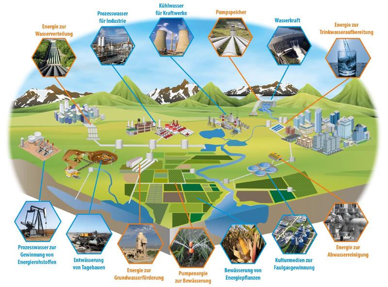 Wasserwirtschaft und Energiewirtschaft sind auf deutlich vielfältigere Weise miteinander verknüpft, als dies auf den ersten Blick der Fall zu sein scheint. Die Gewinnung von Energie ist in den meisten Fällen ohne Wasser nicht möglich, egal ob es sich um fossile oder um erneuerbare Energieträger handelt. Im Zusammenhang mit dem Umbau der deutschen Energieversorgung und den von der Bundesregierung beschlossenen Klimaschutz- und Ausbauzielen für erneuerbare Energien steht die Wasserwirtschaft nach Einschätzung des Clausthaler Umwelttechnik Forschungszentrums (CUTEC) vor neuen Herausforderungen: Sie muss sich auf die zukünftigen Anforderungen einer neuen Energieinfrastruktur einstellen und die Einflüsse der Energiewende auf Grundwasserhaushalt, Gewässer- und Bodenschutz mit einkalkulieren.