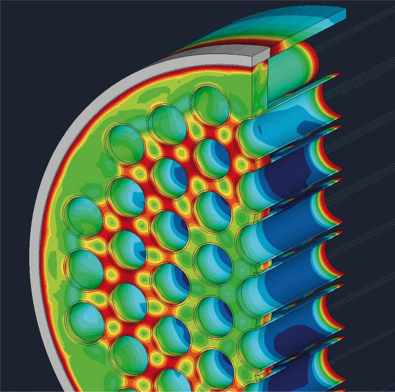 Die energetische Biomassenutzung kann einen wichtigen Beitrag zum Klimaschutz und zur Substitution fossiler Primärenergieträger leisten. Die Nutzung von Biogas bietet sich dabei insbesondere für den Einsatz in Kraft-Wärme-Kopplungsanlagen an. Aufgrund entsprechender Anreize aus dem Erneuerbare-Energie-Gesetz hat sich die Zahl der Biogasanlagen seit dem Jahr 2000 fast vervierfacht, gleichzeitig stieg die installierte Leistung von 50 MW auf heute rund 1.300 MW. Dass die Nutzung von Biogas durch die Optimierung von Anlagenkomponenten vorangetrieben werden kann, zeigt ein Forschungsvorhaben der Firma Aprovis Energy Systems aus Weidenbach. In Biogasanlagen werden in der Regel Rohrbündelwärmetauscher eingesetzt. Empirische Erfahrungen aus Schadensfällen haben gezeigt, dass die Zusammenhänge zwischen den Betriebsparametern von Abgaswärmetauschern und kritischen Betriebsbedingungen nicht ausreichend geklärt sind. Im Rahmen des Forschungsvorhabens wurden mittels einer Parameterstudie systematisch verschiedene Einflussparameter variiert, um deren Einfluss auf das Bauteil zu ermitteln. Im Ergebnis wurden spezielle Auslegungsregeln entwickelt, die es nunmehr ermöglichen, die Hauptabmessungen der Rohrbündelwärmetauscher so zu wählen, dass Herstellungskosten minimiert und die Beanspruchungen insbesondere des hochbelasteten Bauteils Rohrplatte reduziert werden können. Für den Betreiber von Biogasanlagen ergibt sich aus der erhöhten Betriebssicherheit derartiger Apparate eine Reduzierung der Anlagenstillstandszeiten.
