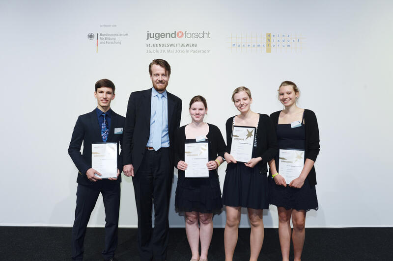 Junge Menschen für Umweltengagement und Erfindergeist auszuzeichnen, dieses Ziel verfolgt die DBU alljährlich mit der Auslobung ihrer beiden Sonderpreise beim Bundeswettbewerb »Jugend forscht«. Die Siegerinnen und Sieger erhielten ihre Auszeichnungen in diesem Jahr Ende Mai im Heinz Nixdorf MuseumsForum Paderborn aus den Händen von DBU-Referent Felix Gruber.