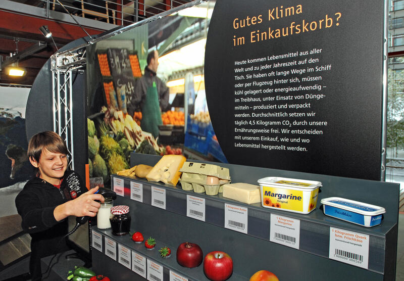 "Klimawerkstatt – Umweltexperimente für Zukunftsforscher“ ist die sechste DBU-eigene Wanderausstellung. An acht Stationen mit insgesamt 24 Experimenten zeigt sie die Ursachen und Folgen des Klimawandels und bietet konkrete Lösungsansätze zum Schutz von Klima und Umwelt. Interaktive Exponate wie der klimafreundliche Einkaufskorb, das Meeresspiegel-Modell oder „Leben auf großem Fuß“ laden interessierte Besucher ein, auf Entdeckungstour zu gehen und die Zusammenhänge zwischen persönlichem Energieverbrauch, Kohlendioxid-Ausstoß und Klimawandel zu erforschen. Bringen Sie mit Hilfe eines Solarkochers Wasser zum "Kochen", schlüpfen Sie in die Pantoffeln von Einwohnern verschiedener Länder und erfahren, wie ihr Lebensstil das Klima beeinflusst oder lauschen Sie einem Bewohner der Insel Tuvalu, wie sich der Klimawandel bei ihm bereits bemerkbar macht.