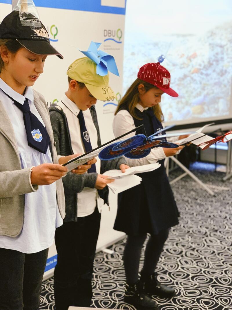 Am 7. Dezember war es dann so weit: Fünf Gewinnerklassen präsentierten auf Einladung von Ewa Podolska – Preisträgerin des Journalists for Climate Award – zu einer Pressekonferenz ihre Klimakampagnen, erhielten Preise und ein großes Dankeschön und standen Journalisten Rede und Antwort. Außerdem wurden beim Education Day am 13. Dezember die anwesenden Politikerinnen und Botschafter aus vielen Ländern mit englischen Flyern über das Projekt informiert.