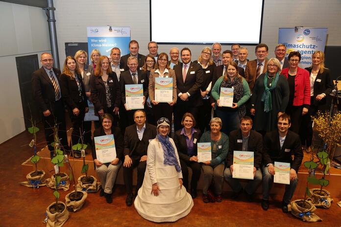 Nicht nur die Bürgerinnen und Bürger konnten den Titel »Klima-Meister« erringen, auch Städte und Gemeinden traten in einer eigenen Kommune-Wertung zum Wettbewerb an. Klima-Meister der Saison 2015 dürfen sich in ihren Kategorien nun Ronnenberg, Springe und Gehrden nennen. Im Kommunenwettbewerb gingen zum ersten Mal mit Ausnahme von Hannover selbst alle Städte und Gemeinden aus der Region an den Start. Die 20 Kommunen traten in drei Kategorien – ländliche Struktur, städtische Struktur und ländlich-städtische Struktur – gegeneinander an. Ihre Punkte sammelten sie in den Disziplinen Solarenergie, Bioenergie, Windenergie, Kraft-Wärme-Kopplung (KWK) und energieeffiziente Gebäude. Gewertet wurden jeweils der Bestand an Anlagen sowie der Zuwachs im Jahr 2015.