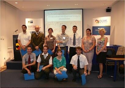 Am 8. Juli 2012 wurden im Rahmen des MOE-Stipendienprogramms 10 junge ungarische Hochschulabsolventen offiziell zu DBU-Stipendiaten ernannt. Die vom ungarischen DBU Alumni-Netzwerk organisierte feierliche Urkundenverleihung fand zum dritten Mal im Gebäude der Deutsch-Ungarischen Industrie- und Handelskammer in Budapest statt. Seit 2005 hatten insgesamt 95 künftige Umweltexperten die Möglichkeit, unter der Förderung der DBU ihre Forschungspläne in Deutschland umzusetzen. Auch in diesem Jahr hat die Jury während des Auswahlprozesses nach talentierten Kandidaten und aktuellen Umweltthemen gesucht, so Frau Dr. Nicole Freyer-Wille, die Koordinatorin des MOE-Stipendienprogramms in ihrer Festrede. Neben Umweltingenieuren gibt es auch Biologen und Ökonomen im Kreis der neuen Stipendiaten, die ab September ihren 6- bis 12-monatigen Forschungsaufenthalt bei deutschen Firmen, Instituten, Verwaltungsbehörden oder Universitäten beginnen.