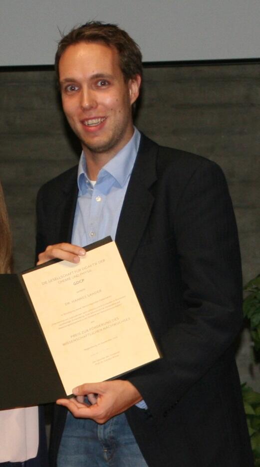 Der ehemalige DBU-Stipendiat Dr. Hannes Sander wurde für seine Dissertation „Orientierung von Jugendlichen beim Urteilen und Entscheiden in Kontexten nachhaltiger Entwicklung: Eine rekonstruktive Perspektive auf Bewertungskompetenz in der Didaktik der Naturwissenschaften“ der diesjährige Nachwuchspreis der GDCP verliehen.