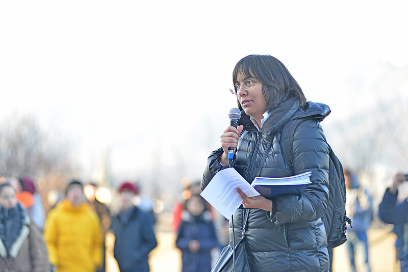 Prof. Dr. Sonia I. Seneviratne hält eine Rede beim Klimastreik in Bern 2019