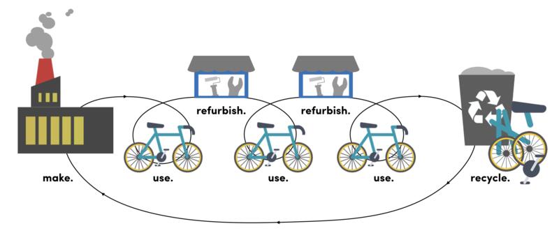 2. Schritt – repair, refurbish & recycle (reparieren, aufbereiten, wiederverwerten): Unternehmen werden digitale Prozess-Tools dabei unterstützt, ihre benutzten Produkte aufzubereiten, nachhaltiger zu produzieren und zu designen, um Ressourcen möglichst lange im Produktkreislauf zu halten.